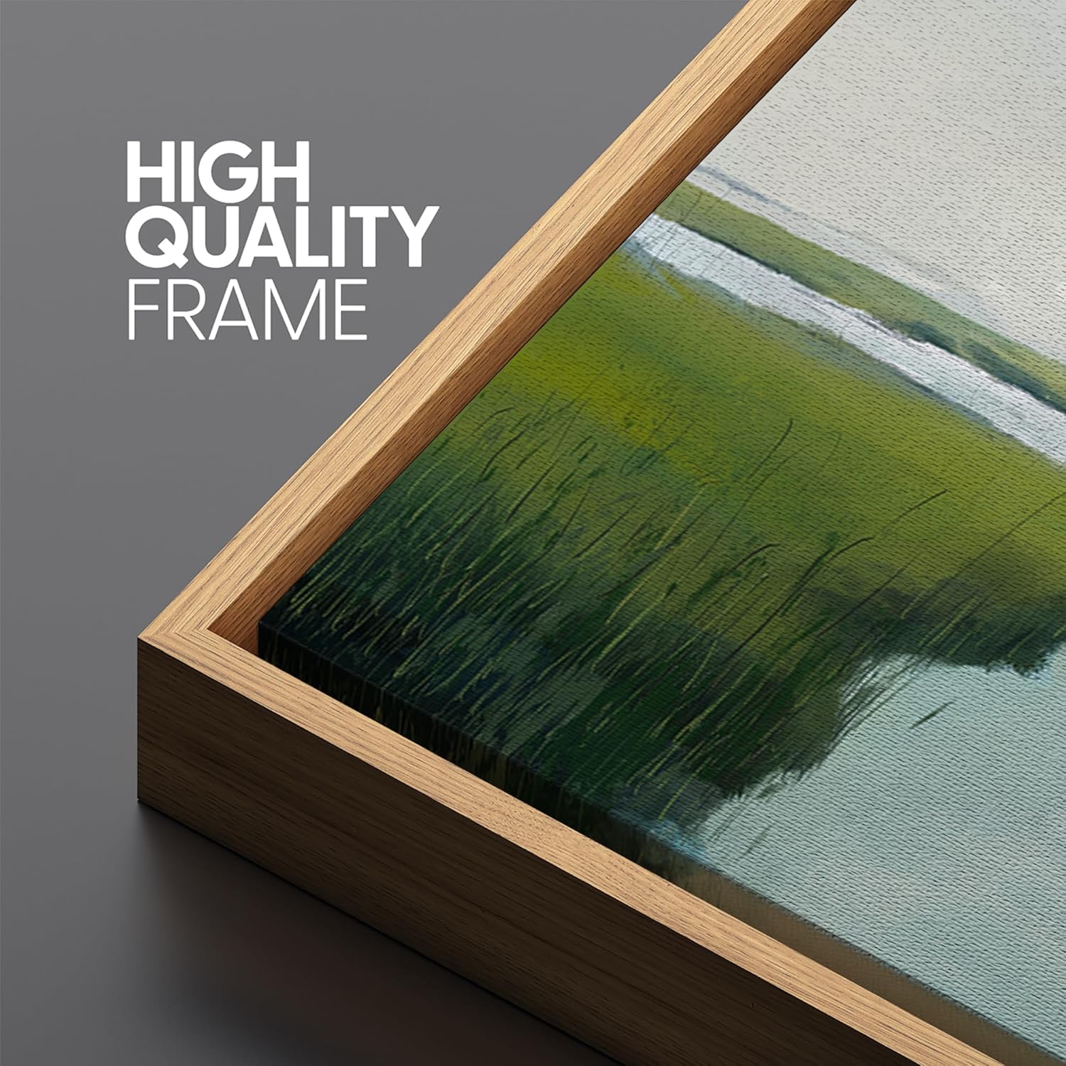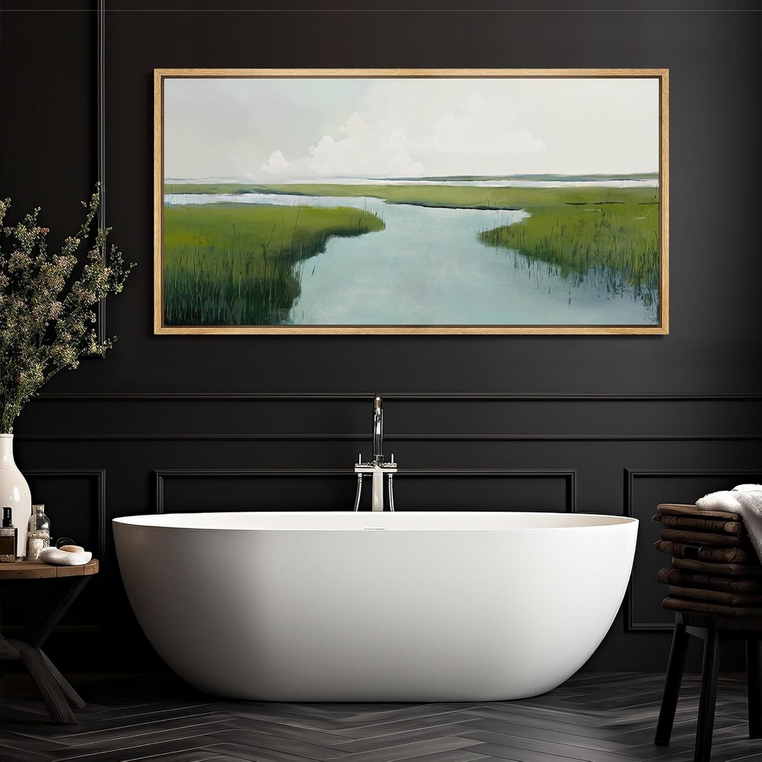 MUDECOR Extra Large Framed Canvas Print Wall Art Serene Marshland Landscape Green and Blue Peaceful Illustrations Antique Retro Fine Art Illustrations Decorative Colorful for Bedroom - 60"x30"