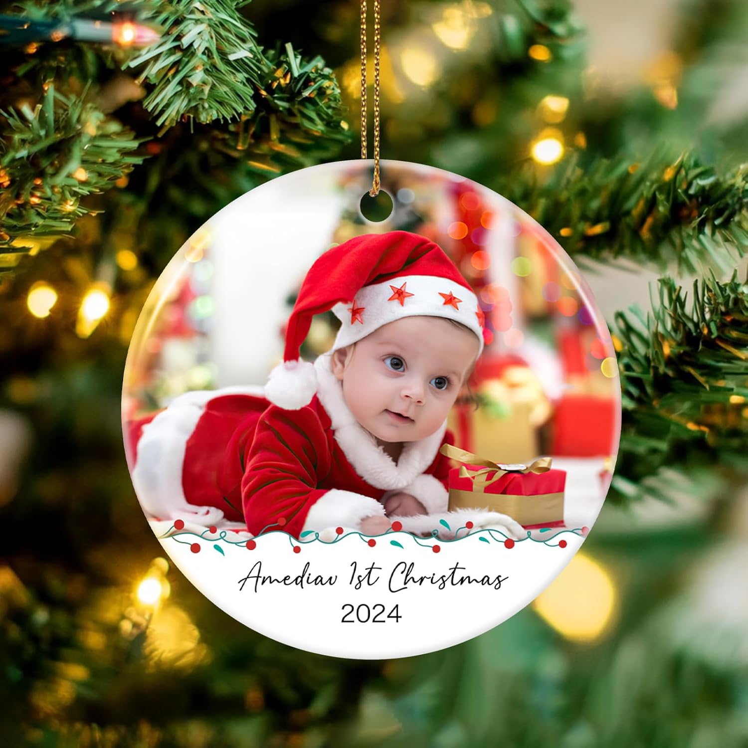 - FIRST CHRISTMAS ORNAMENT: This personalized ornament is perfect for commemorating your baby’s first Christmas. It is suitable for both boys and girls. Personalize baby's first christmas ornament uniquely with your Baby Photo, Name, Date of Birth. Click "Customize Now" to start personalizing your own ornament and celebrating baby's first Christmas with this cherished baby's first Christmas ornament 2025.