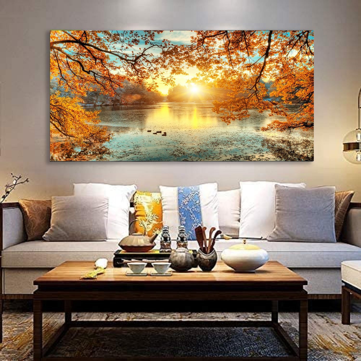 Yxbhhym-Landscape Tree Canvas Wall Art Fall Forest Sunset Wall Decor Poster Lake Water Pictures for bedroom wall decor Natural Scenery Paintings Artwork Large Living Room Decor Home Office Decoration