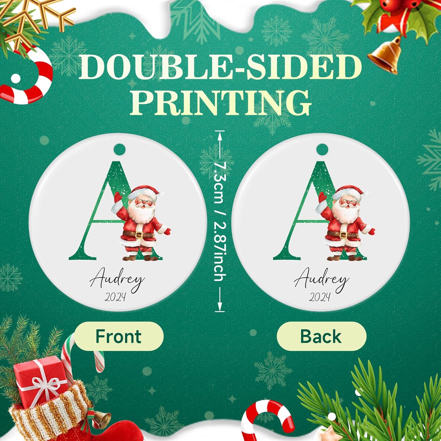 - 【Double-Sided HD Printing Christmas ornament Personalized】Custom Christmas ornament for Christmas tree use HD printing technology, double-sided printing the same, bright colors,not easy to fade.About 2.87", you can type the family member name,we will print the name on the custom ornament, give personalized family ornament to him or her as Christmas gift ideas