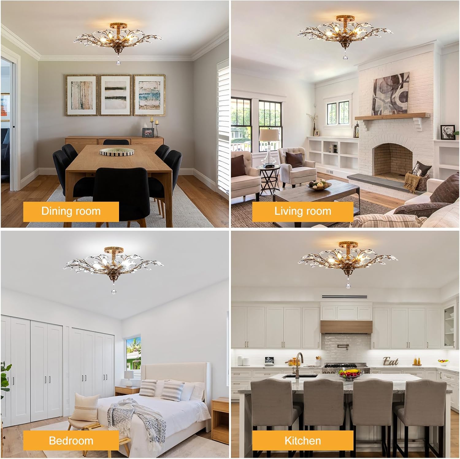 - Wide Application: This vintage crystal ceiling light fixture is suitable for various spaces in your home, such as the dining room, kitchen island, living room, bedroom, bar, entryway, etc. It can also add a touch of elegance to commercial areas like office, restaurants, galleries, exhibition rooms, and coffee shops. Its stylish design complements a range of interior styles.(Note: The 5-head ceiling light chandelier can only be used on flat ceilings.)