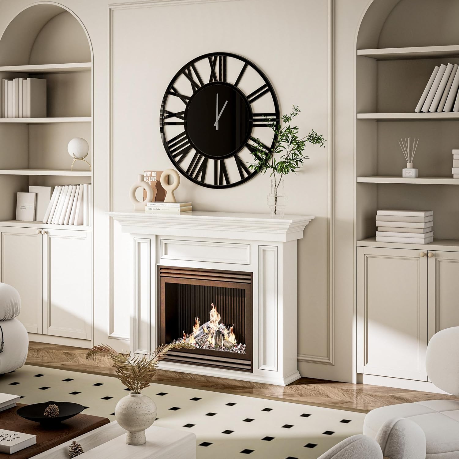 SHYFOY Large Wall Clock - 23.6" Modern Black Wall Clock with Roman Numerals, Decorative Wall Clocks for Living Room, Bedroom, Office - Easy to Hang, Silent Non-Ticking