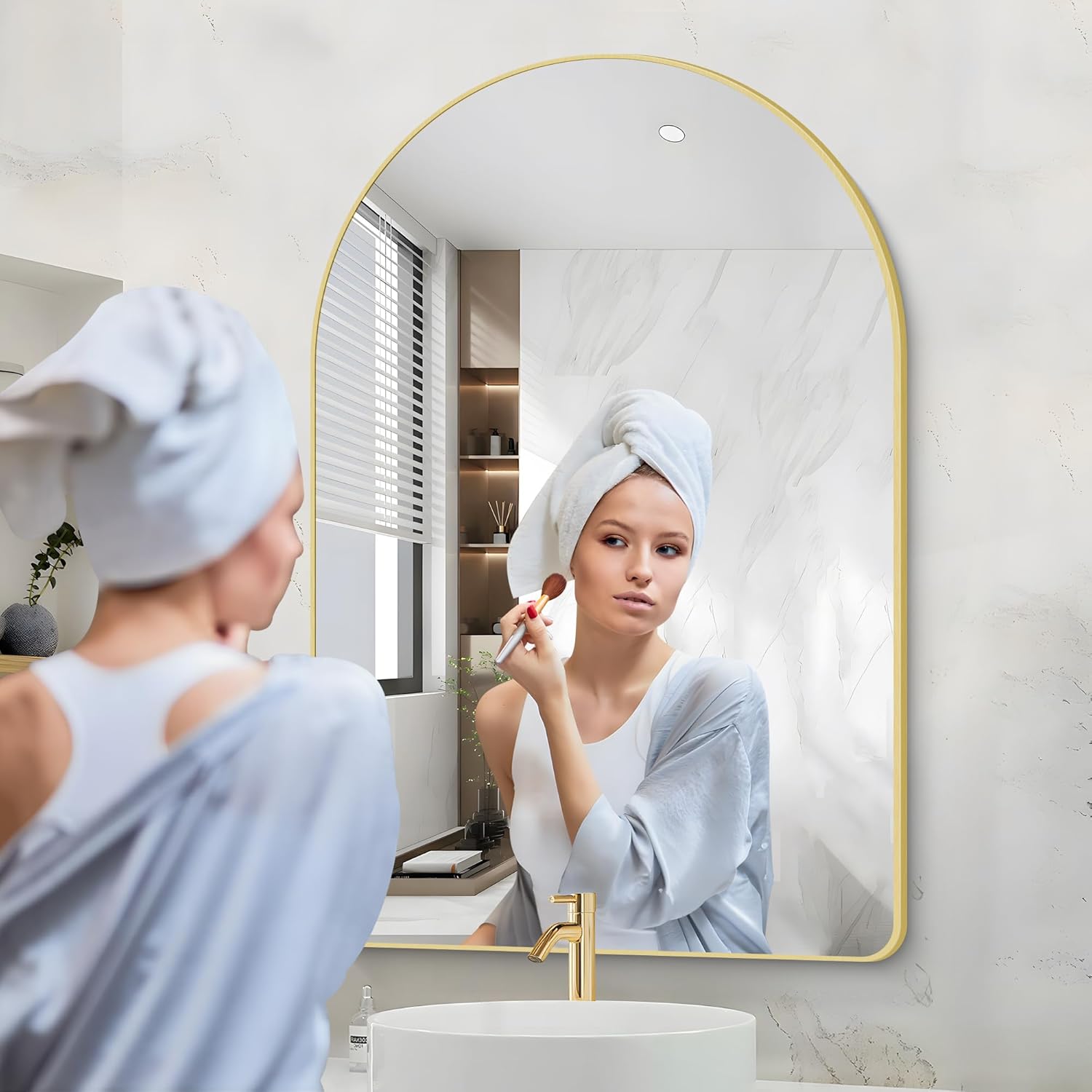 - Arched Bathroom Mirror Design: The Arched-top wall mirror makes your bathroom more elegant and classy, which especially attracts your eyes.bathroom mirrors for over sink,living room wall decor, gold arched mirror Ideal for wall mirrors decorative, gold mirror for bathroom make the space more brighter and spacious.