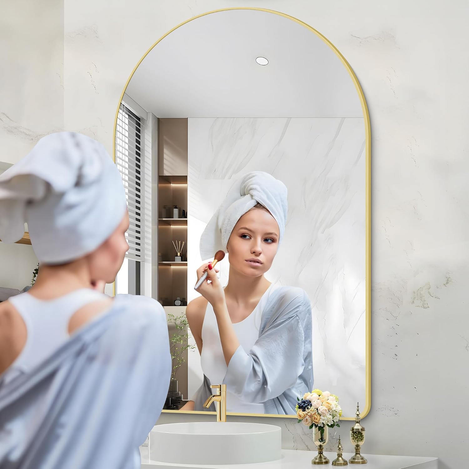 - Arched Bathroom Mirror Design: The Arched-top wall mirror makes your bathroom more elegant and classy, which especially attracts your eyes.bathroom mirrors for over sink,living room wall decor, gold arched mirror Ideal for wall mirrors decorative, gold mirror for bathroom make the space more brighter and spacious.