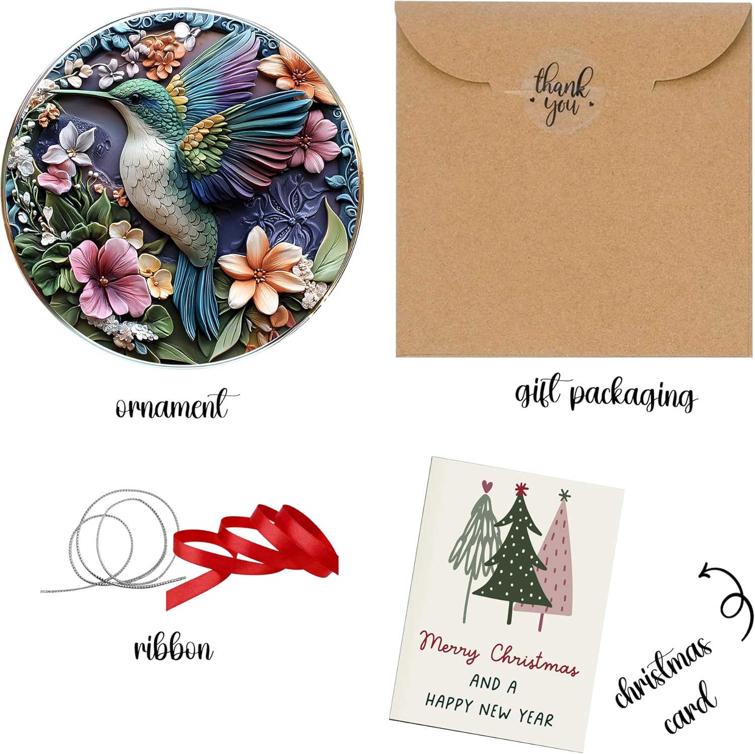 Jabihome Christmas Ornaments 2025, Exchange for Women, Men, Collectible Dated Year Ornaments for Tree, Unique Acrylic Suncatcher, Printed Stained Glass Effect Decor (Hummingbird)
