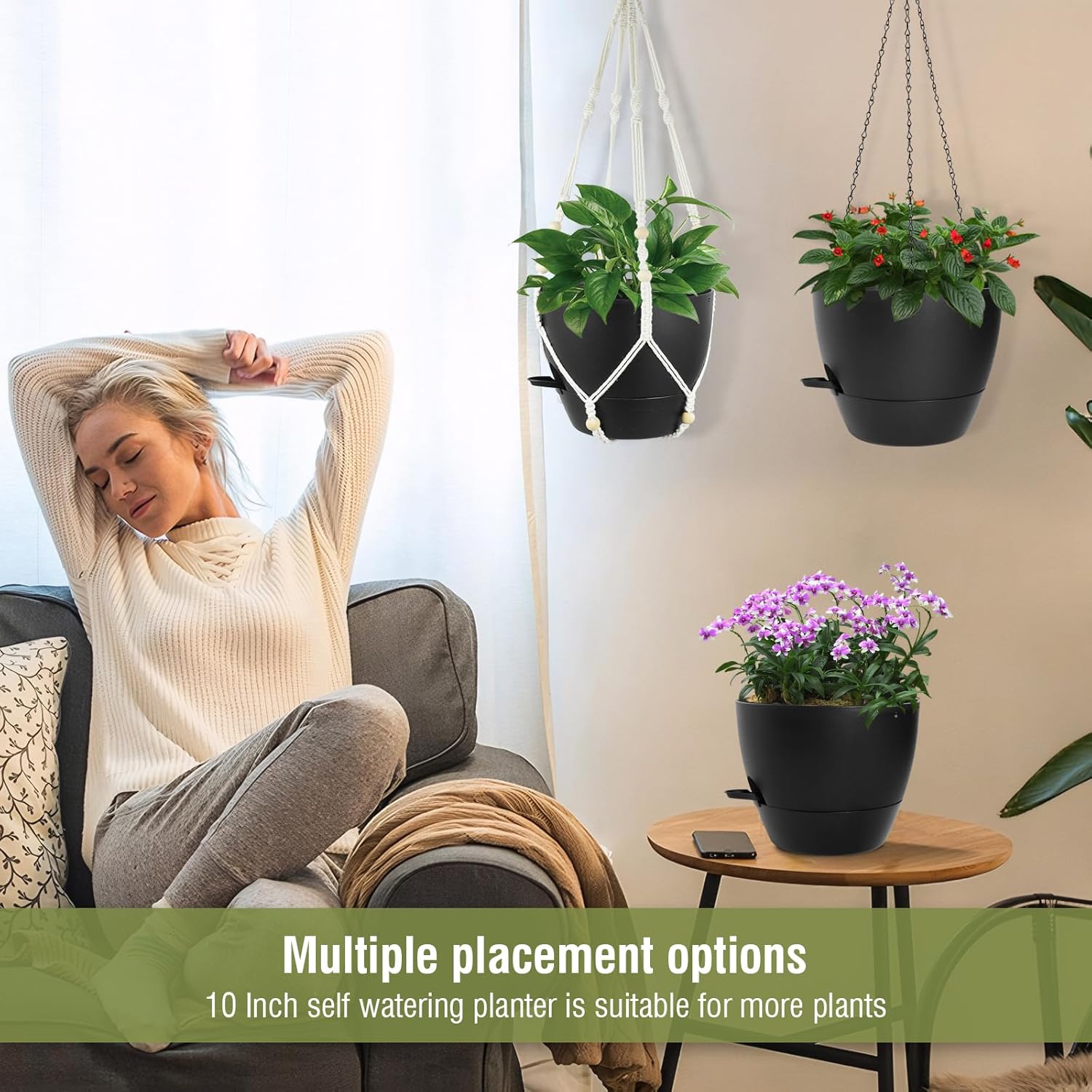 - 【Convenient】Self watering hanging pots with deep reservoir makes it easy for when go on vocation that no need someone to come over water plants and flowers. and these hanging baskets are easy to install and suitable for hanging in various locations such as balcony, window, porch and garden.