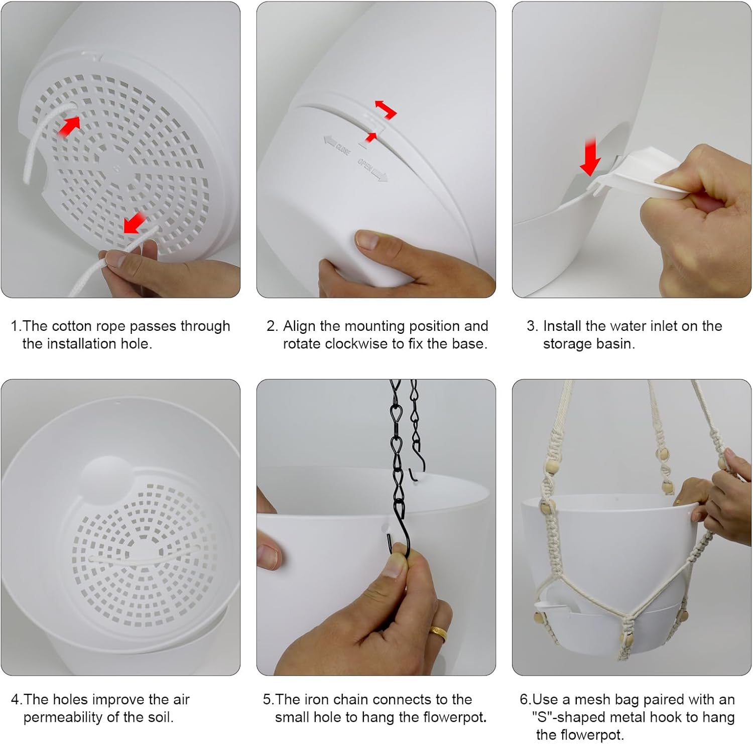 - 【Self-Watering Hanging Planter with Removable Tray】This hanging flower pot comes with a detachable bottom tray that acts as a water reservoir, holding a good amount of water. When your plant needs water, it’s absorbed through cotton wicks from the reservoir to the soil, reducing how often you need to water