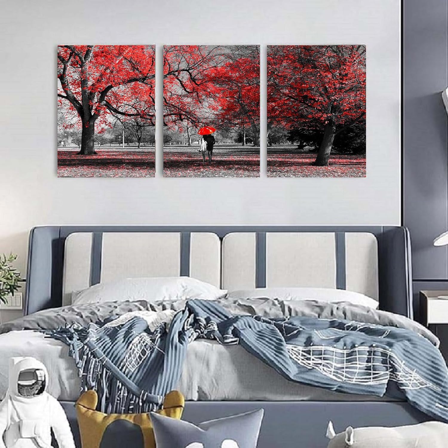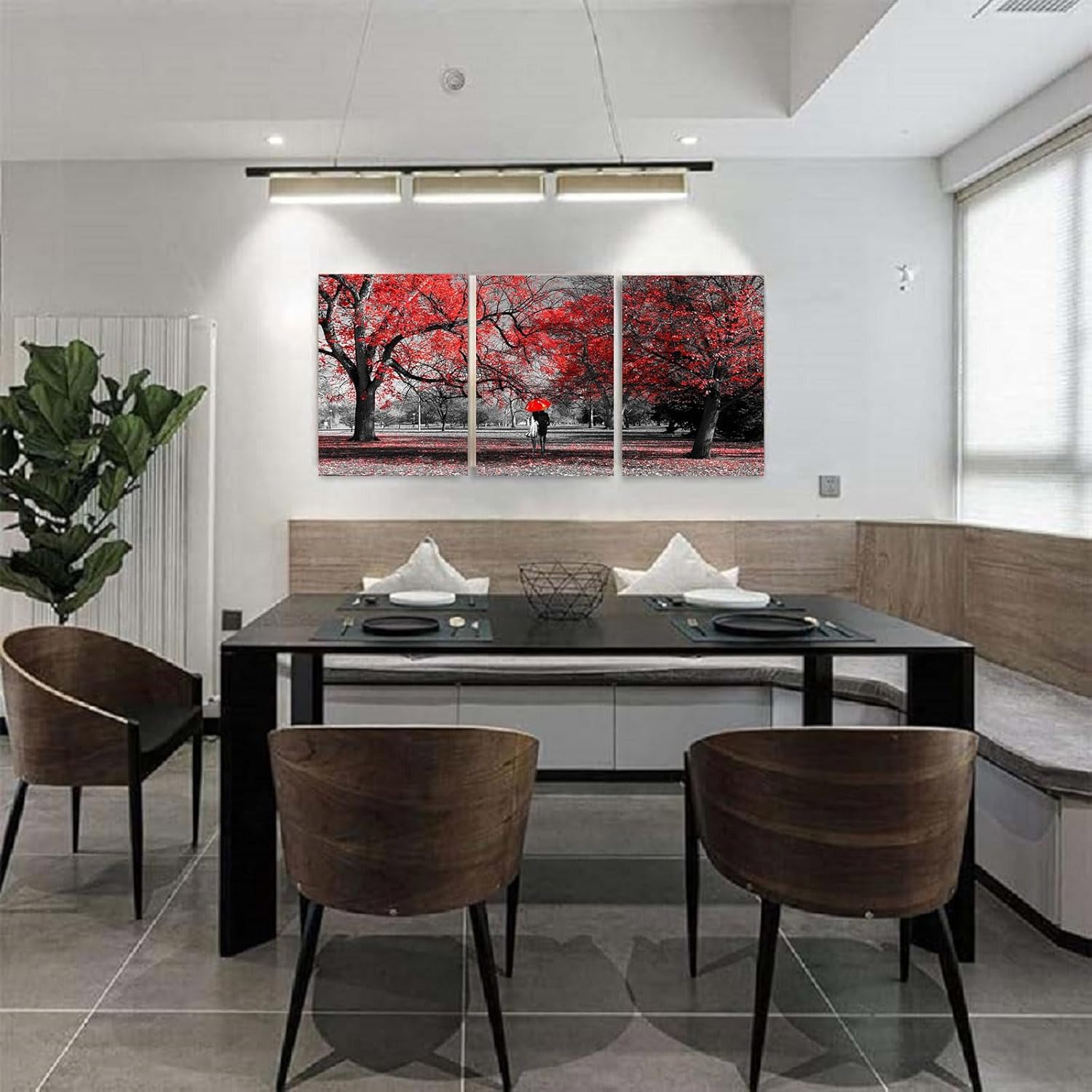 - ππ Red Wall DecorTree landscape Wall Art Size: 12x16inchesx3Pcs(30x40cmx3Pcs) Red Bathroom Painting Prints Framed Ready to Hang