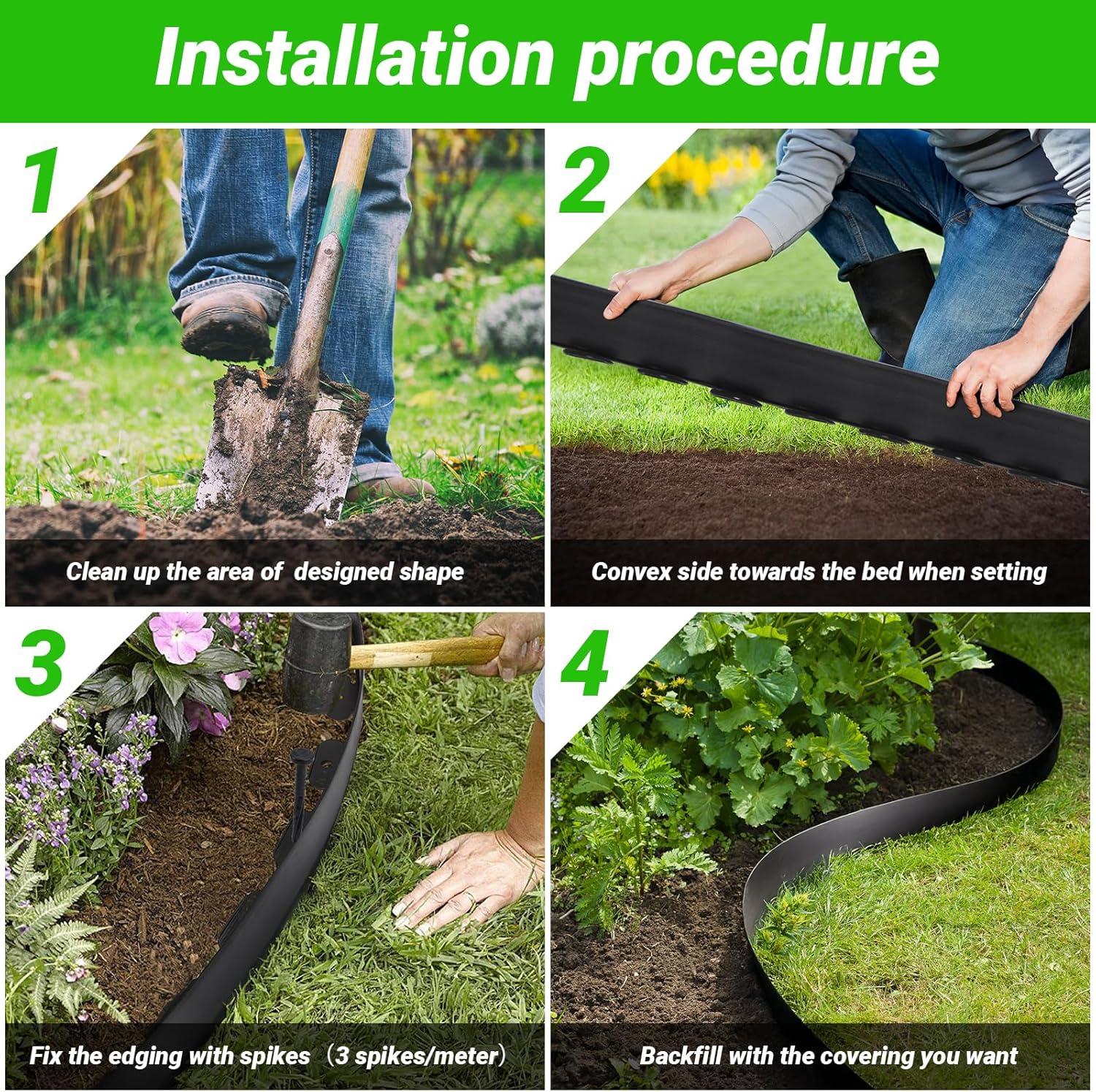 - 【Easy to Install】No digging or burying needed! Just clear the area, lay the edging in place, and secure it with the included stakes. It’s that simple—set up your garden’s borders in minutes.
