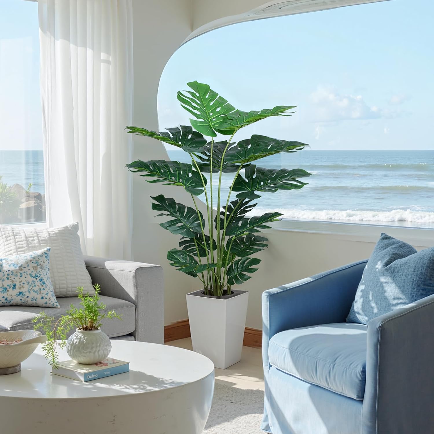 - 【Lifelike Decor】: This faux monstera plant features a likelife leaves, mimicking natural monstera plant details for adding a touch of nature to your indoor space.