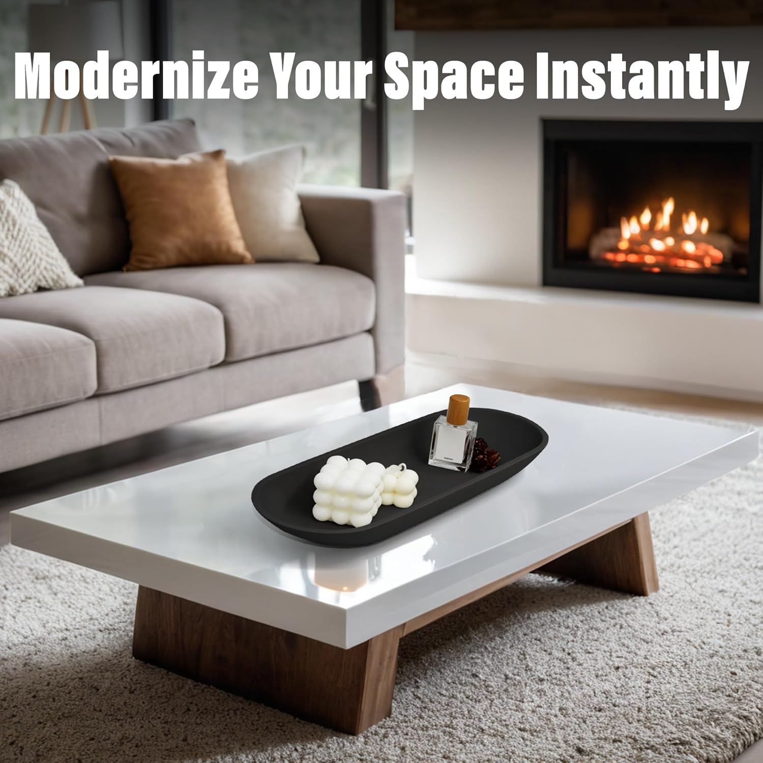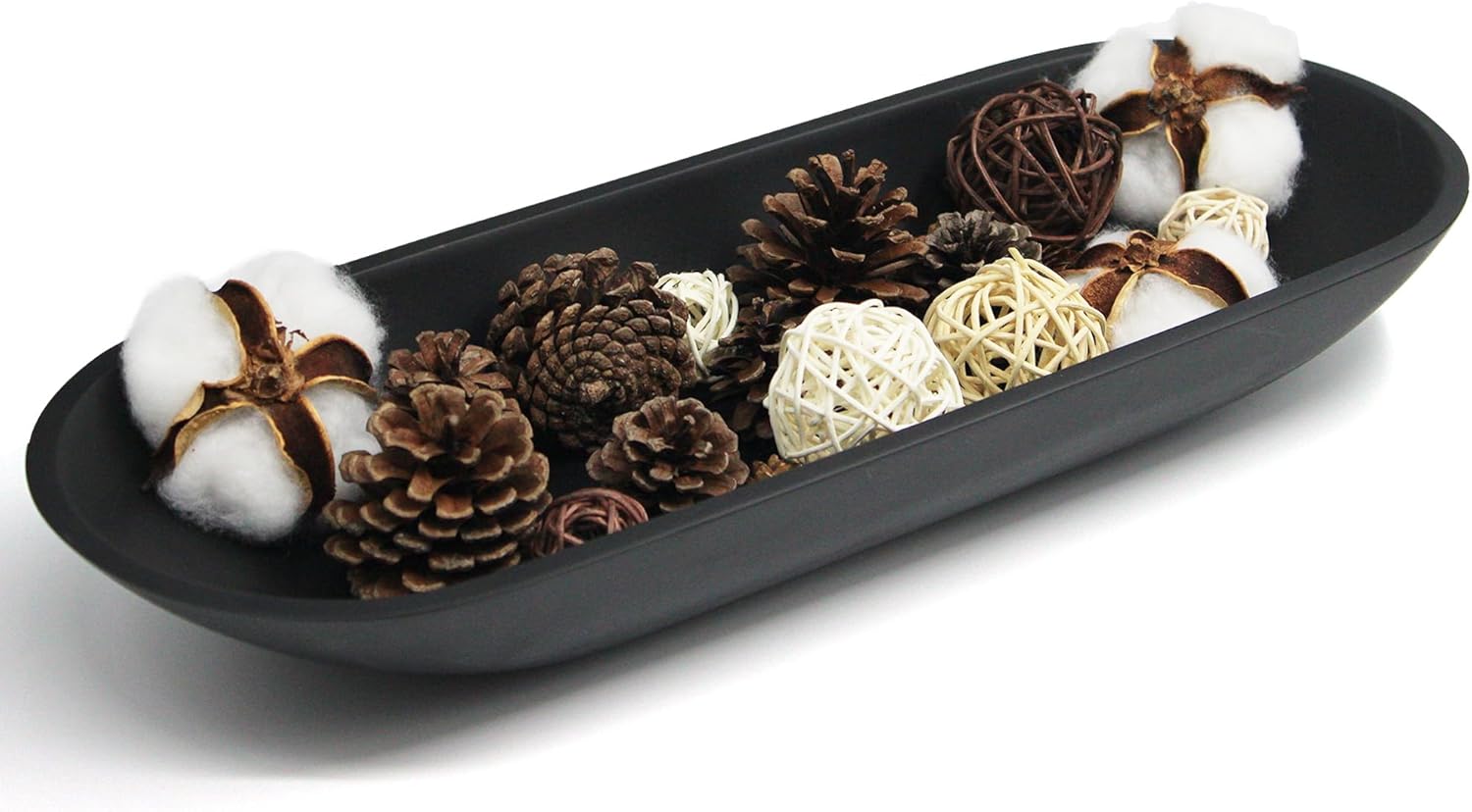 Large Decorative Bowl for Home Decor - Long Dough Bowl with Anti Slip Base for Table Centerpieces - Black Minimalist Design Dough Decor Bowl for Coffee Table, Dining Table Centerpiece