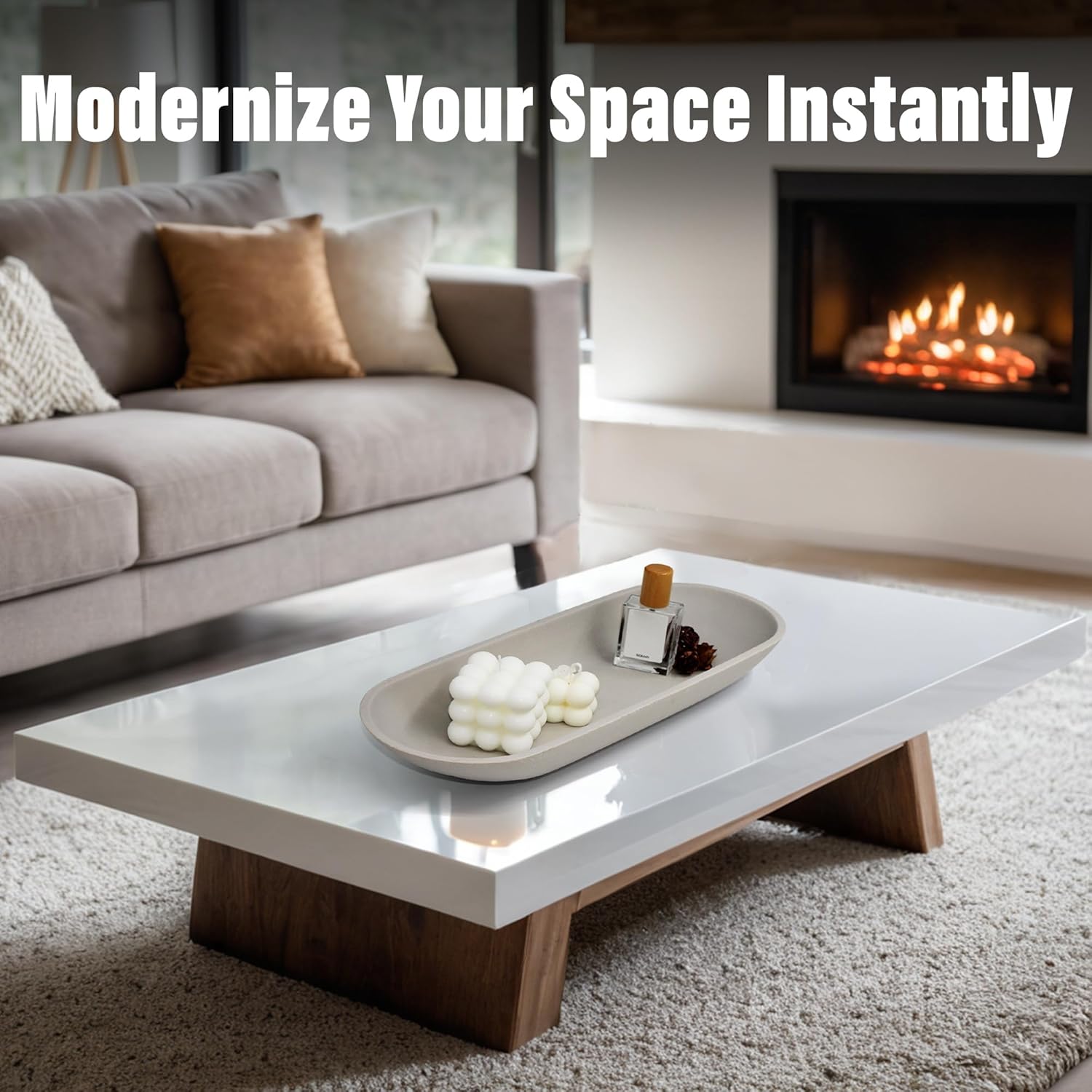 Large Decorative Bowl for Home Decor - Long Dough Bowls with Anti Slip Base for Table Centerpieces - Grey Minimalist Design Dough Decor Bowl for Coffee Table, Dining Table Centerpiece