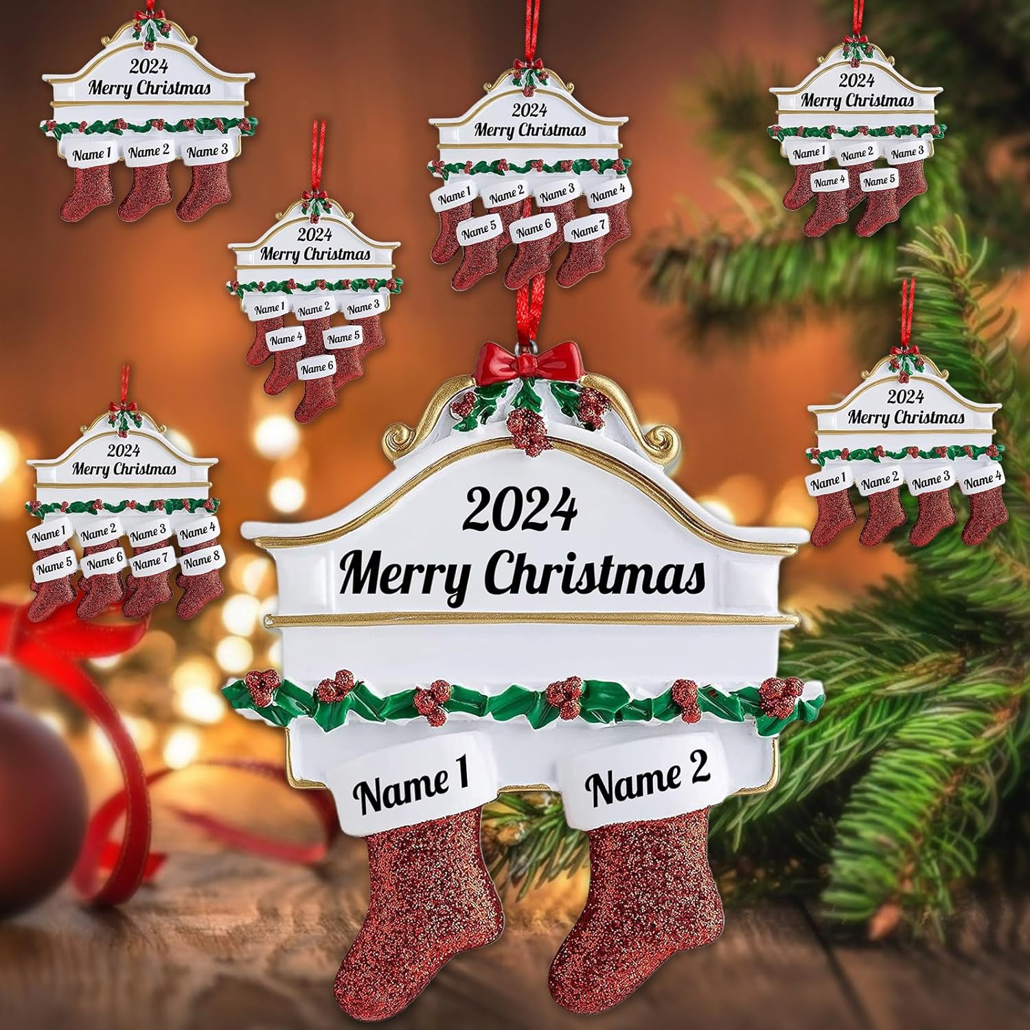 - Durable Ceramic Material: Personalized red stocking family of 2-8 Christmas ornaments.Made of light-textured ceramic material with red glitter, it eye-catching existence