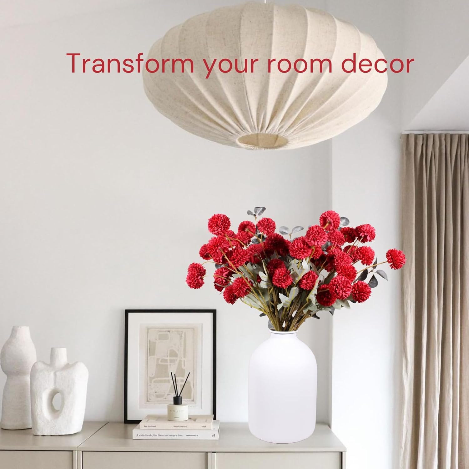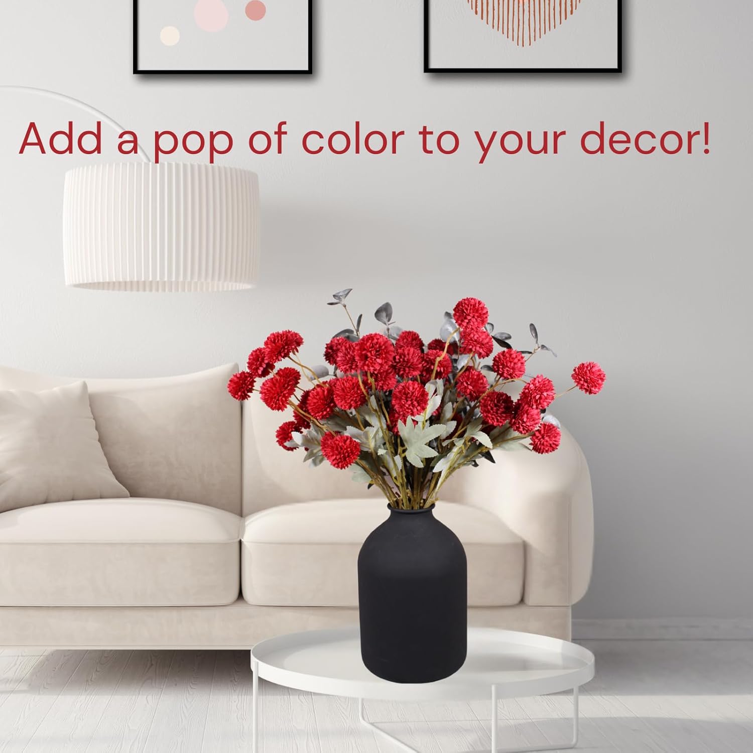 - Elegant Burgundy Centerpiece - Enhance your wedding with our burgundy artificial flowers, perfect for creating sophisticated burgundy wedding decor. These realistic dark red small mum flowers complement any table setting, adding a touch of love to your special day. Each package include 10 stems of burgundy flower stems in total of 50 flower balls, and 2 branches of green eucalyptus stems.