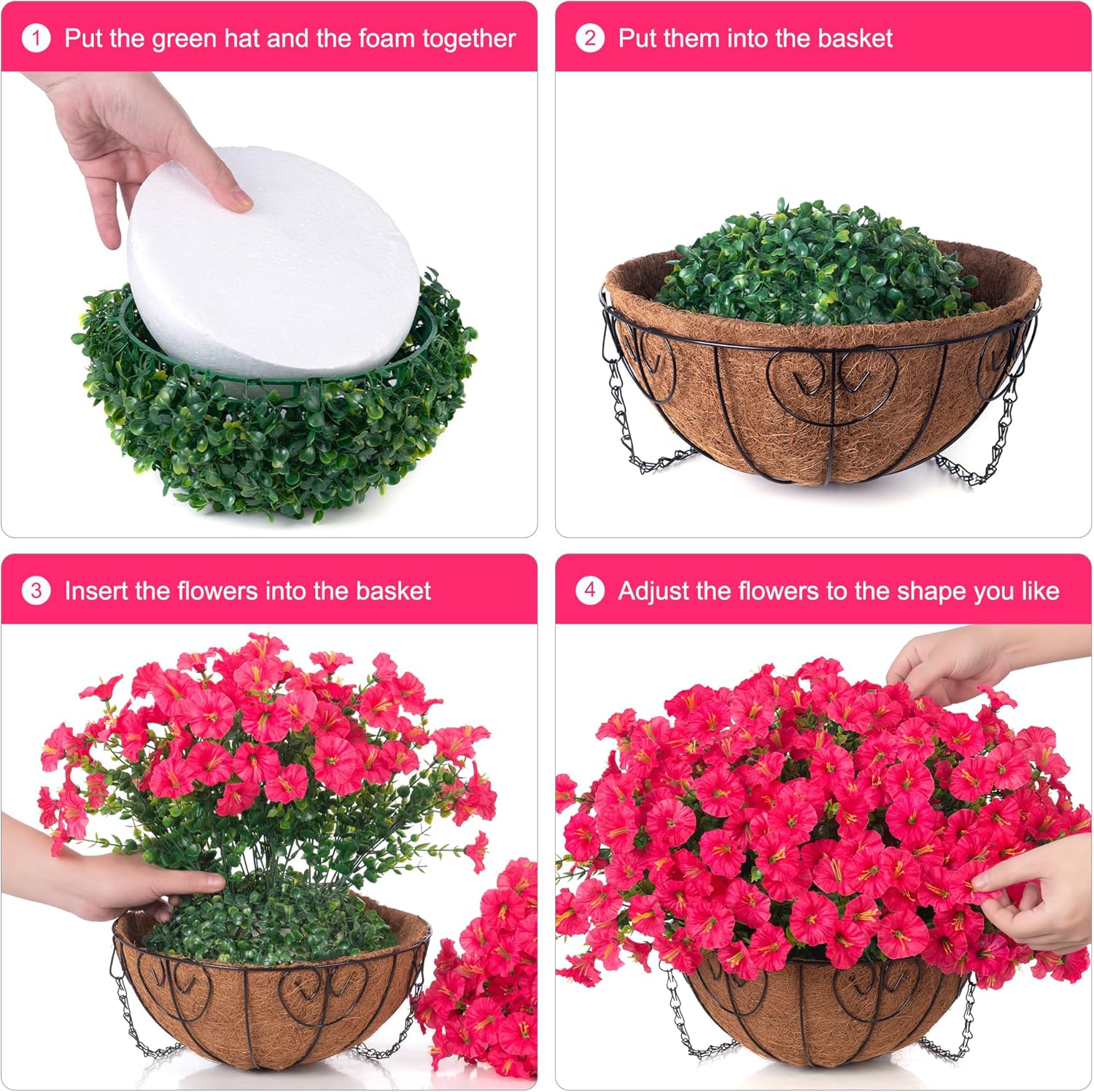 - π’ Artificial Hanging Morning Glory Flowers Basket: Package include 12 bundles Realistic silk morning glory match with green eucalyptus leaves, 1 Hanging Basket with chain, 1 foam, 1 green hat. Enjoy vibrant blooms year-round, regardless of the season or weather conditions.