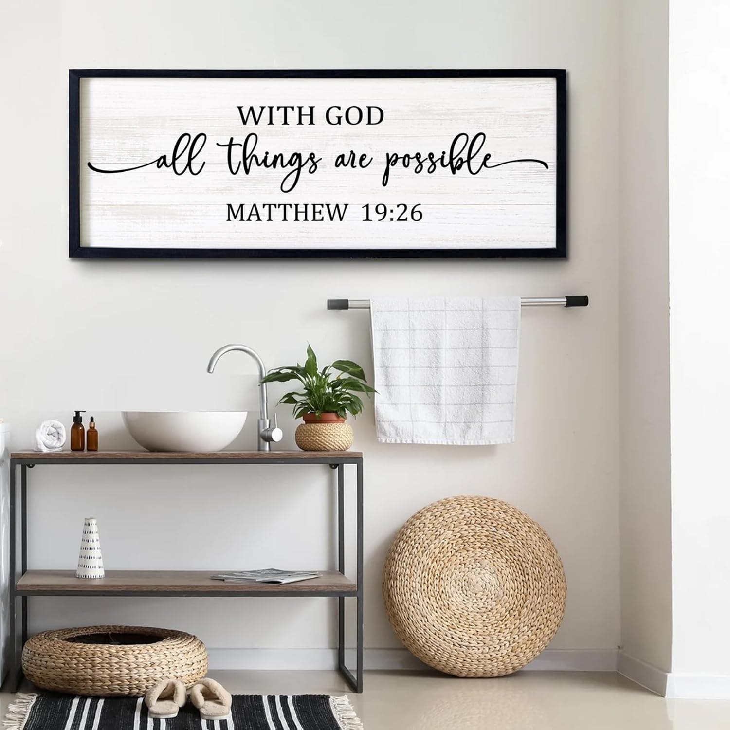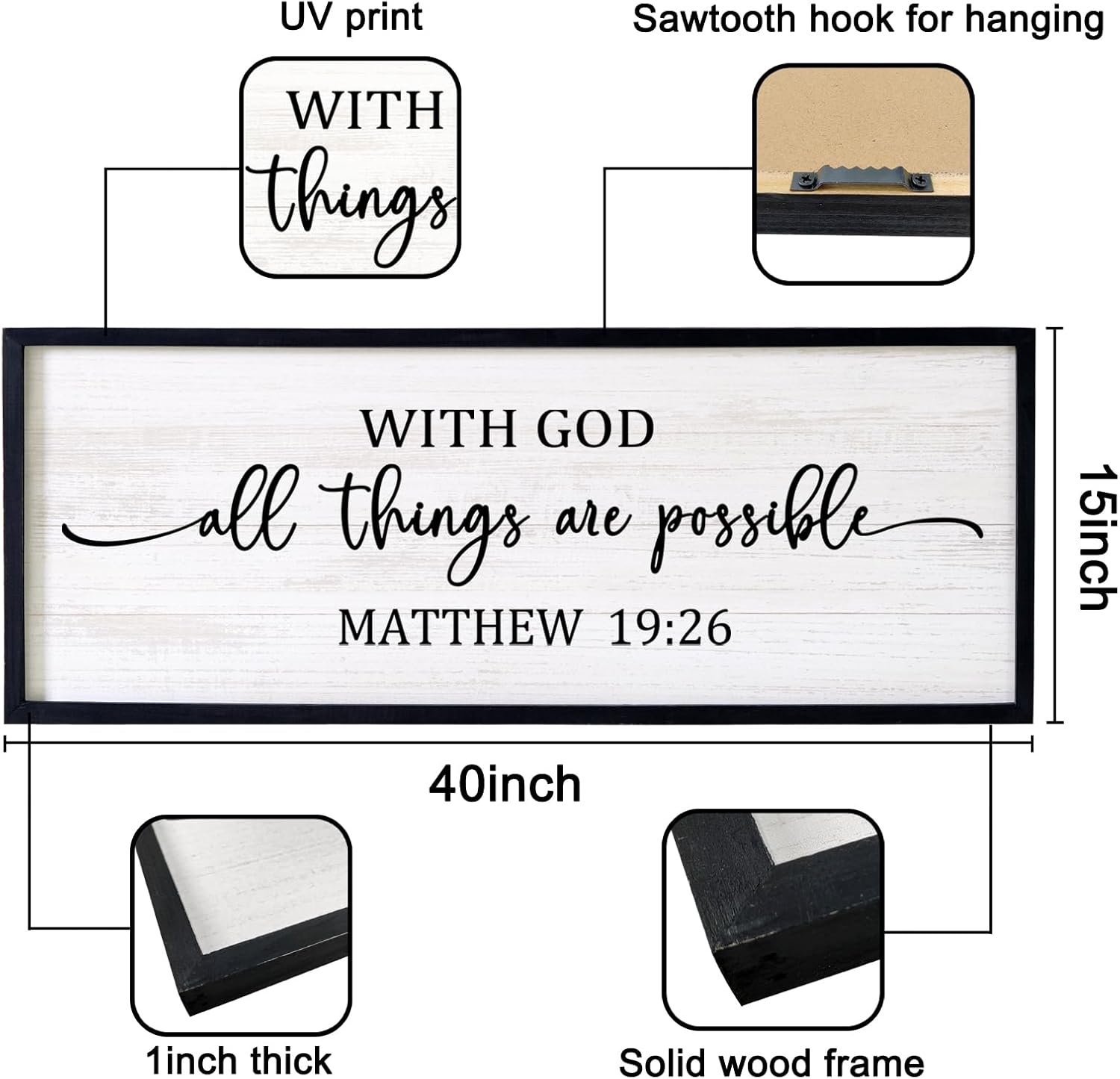 - 【Encouraging Words】With god all things are possible large hanging wood sign adopt minimalist letters on the white background, showing constant reminder of faith and devotion in any setting and you passion for god, adding a touch of elegant, and classic beauty to your space and giving people a calming feeling.