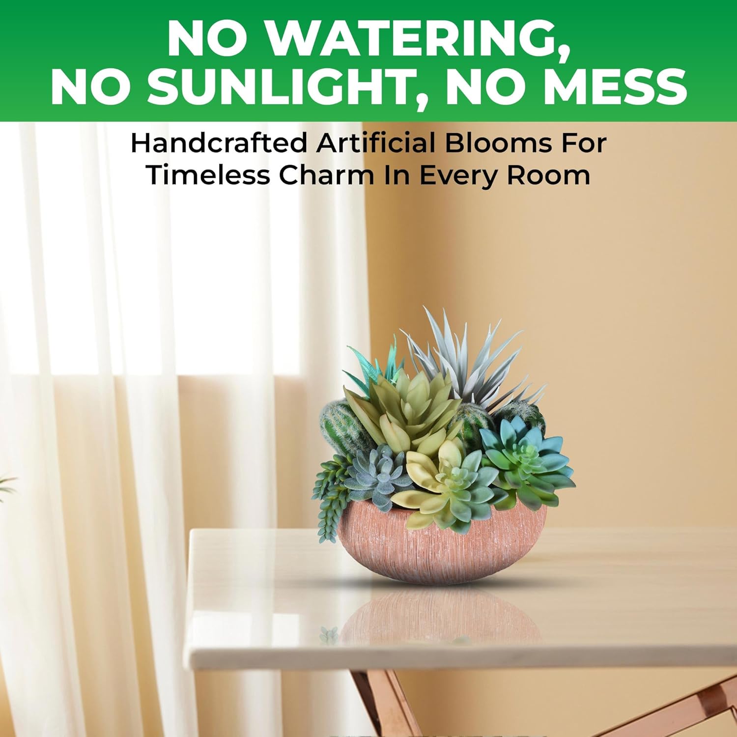 - [Note] Please note that slight variations in color or appearance may occur due to the handmade nature of the product. These succulents plants artificial require no maintenance—just set them up and enjoy their realistic beauty without worrying about watering or sunlight.