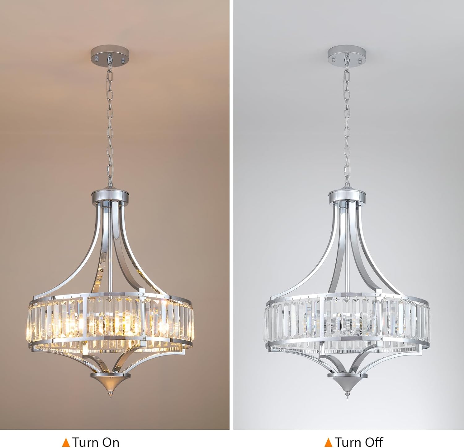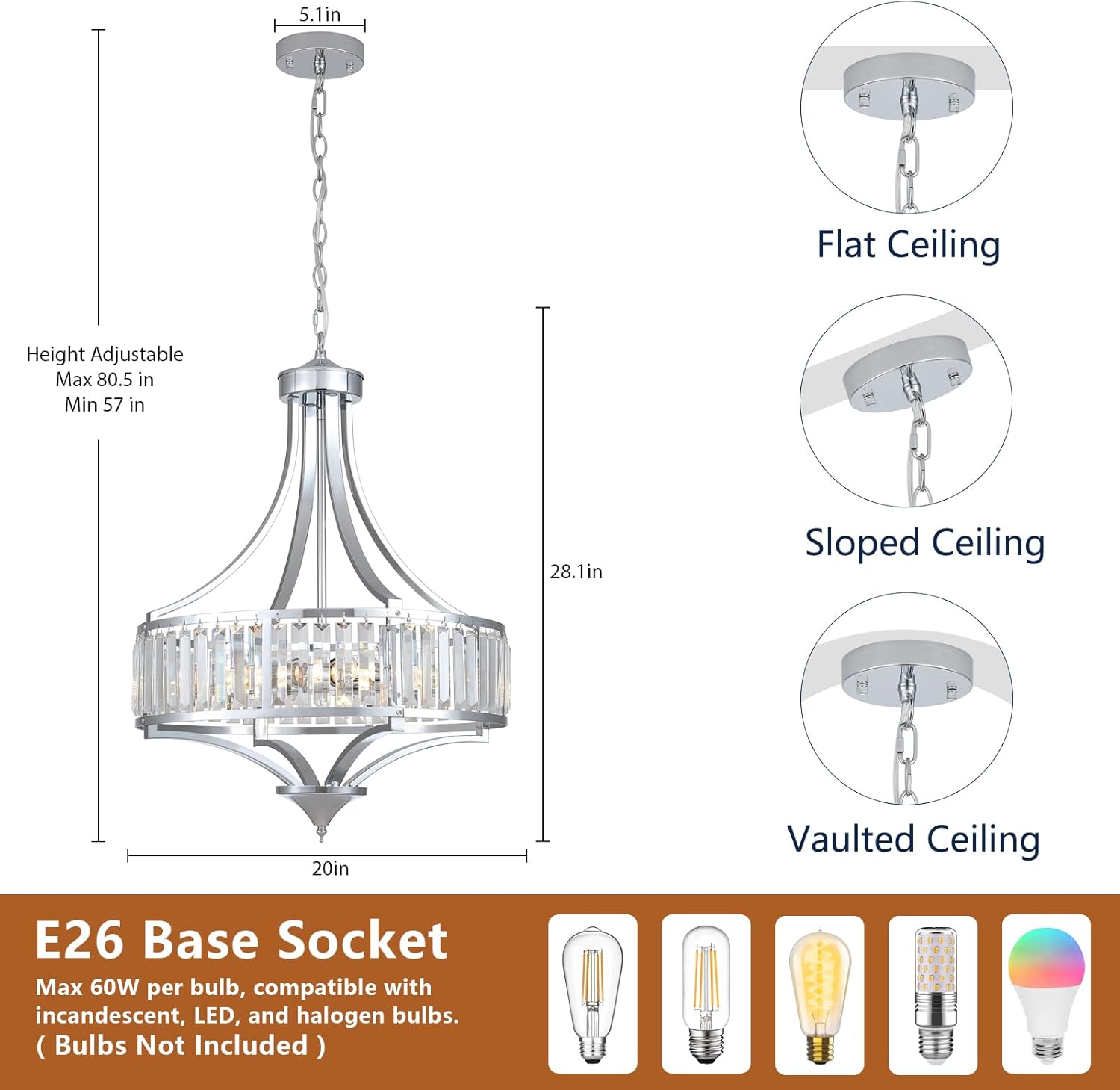 - ใ๐๐๐ซ๐ ๐ ๐๐ก๐๐ง๐๐๐ฅ๐ข๐๐ซ ๐๐ข๐ ๐ก๐ญ ๐๐จ๐ซ ๐๐ฎ๐ฅ๐ญ๐ข-๐๐จ๐จ๐ฆใChrome crystal chandelier to illuminate diverse spaces: cast warm ambiance over dining tables, add grandeur to living rooms, or create a luxurious bedroom focal point. Compact 20-inch diameter suits small and large areas alike. Ideal for entryways, studios, or open-plan layouts craving refined lighting.