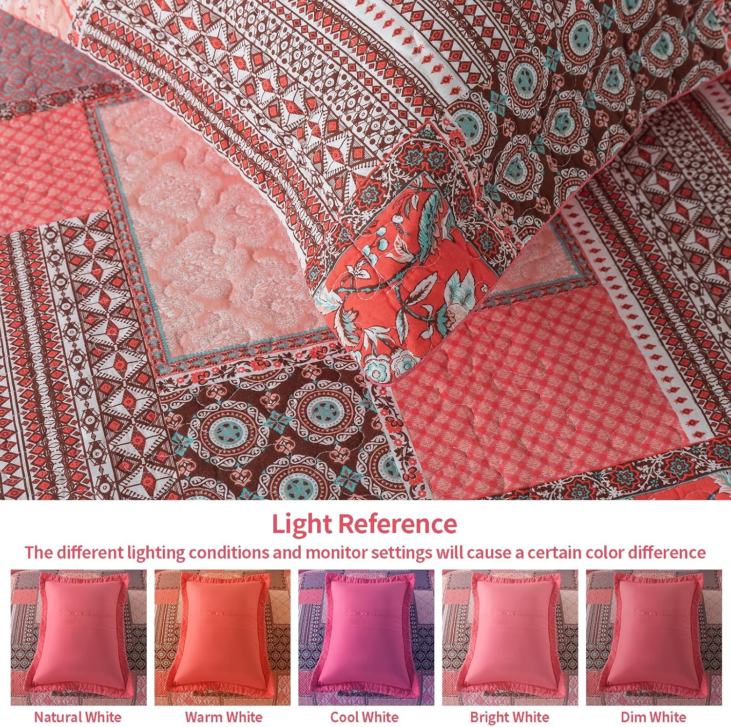 - 【Easy to Care】Pink quilts king size are machine-washable. No color fading and no unraveling after washing. A king size quilt set can be washed by a gentle water cycle and tumbled dry at low heat. Do not bleach. When received floral quilt, it is vacuum packed, washing will make it softer and fluffier.