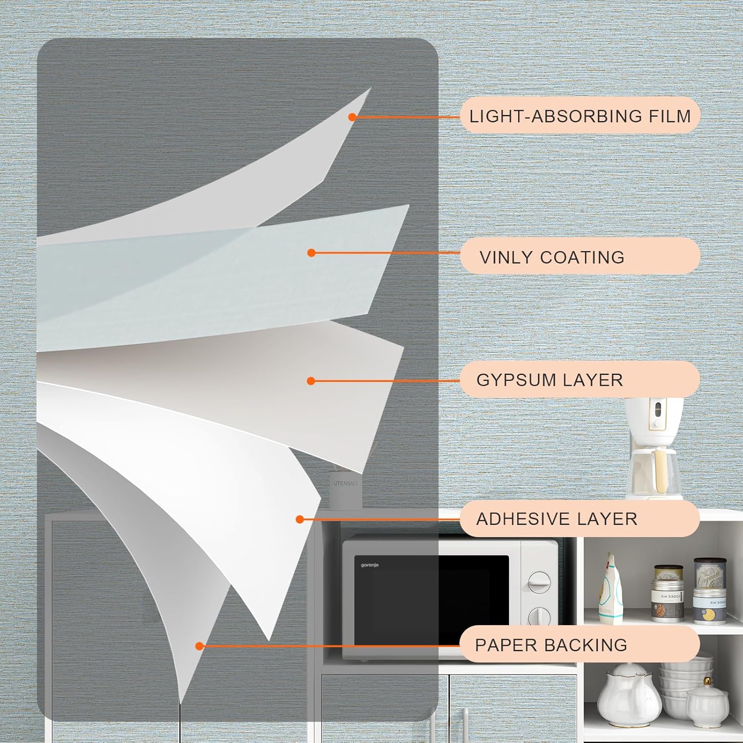 - FEATURES--Vinyl/pvc material. Thicker than normal wallpaper, full of real texture,self adhesive, easy to apply. Waterproof . Indoor use, ideal for most smooth flat surfaces such as bedroom,living room,cabinets,furniture,etc.