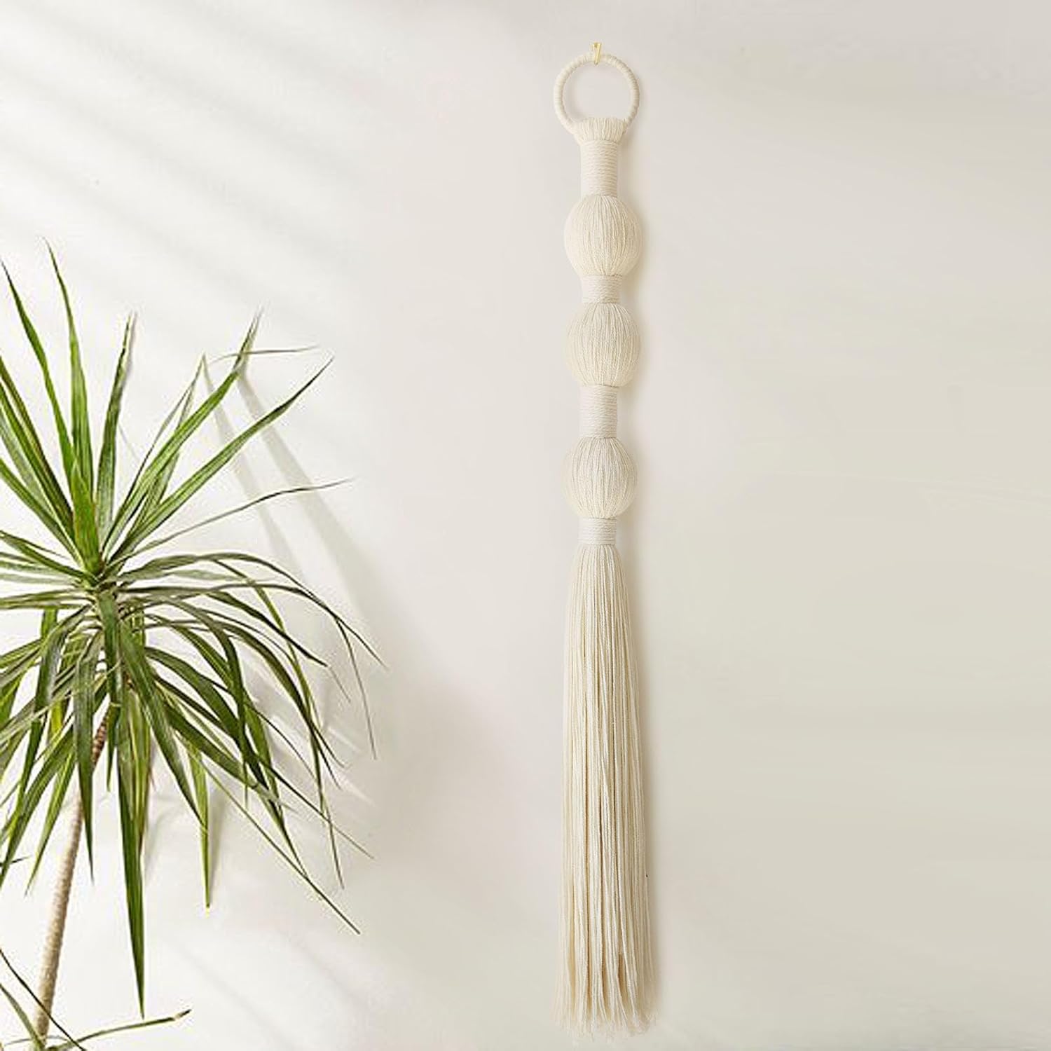 - Macrame wall hanging decor white sphericity cotton tassels are a timeless classic color. tassel decoration can be perfectly integrated with various decoration styles, enhancing the sense of space layering and creating a warm and quiet atmosphere.