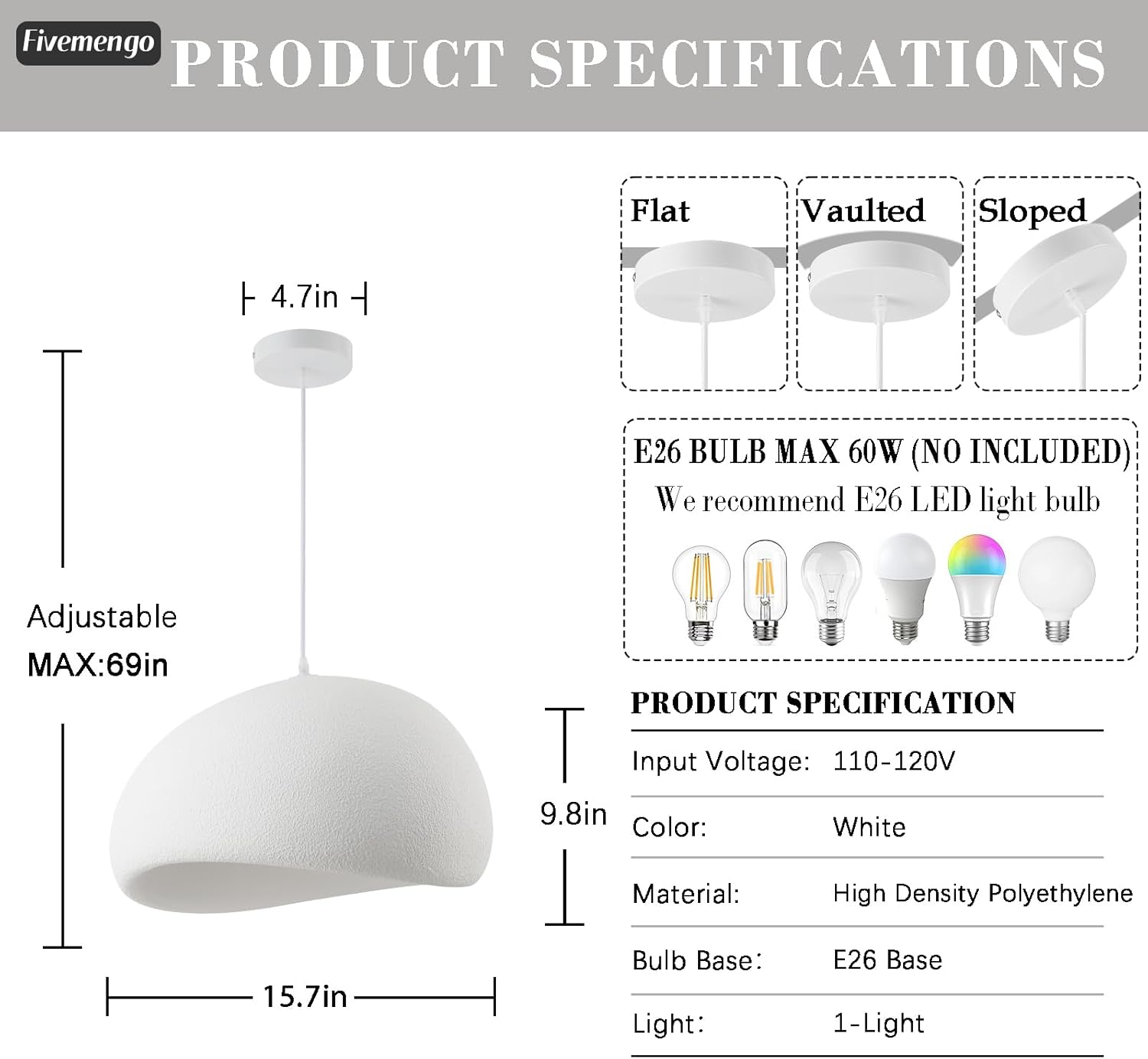 - DESIGN: Modern Japanese Wabi Sabi pendant light featuring an elegant white high-density polystyrene lampshade with minimalist aesthetics