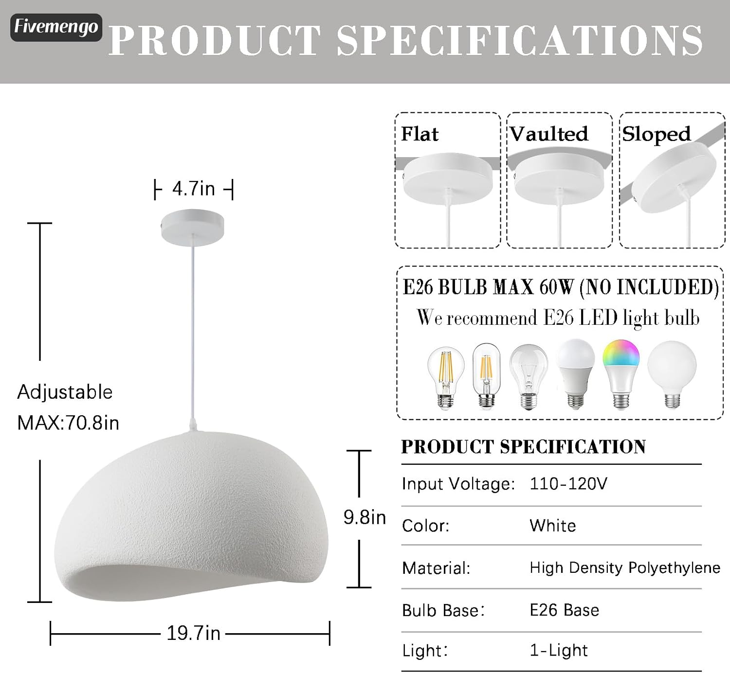 - SIZE: 19.7 inches in diameter, E26 base, perfect for kitchen islands, dining areas, and living spaces requiring focused illumination; bulb not included