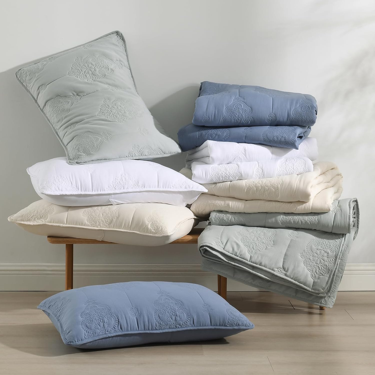 - Soft Pre-Washed Microfiber: This series quilt are crafted from 100% microfiber polyester, skin friendly, lightweight for cozy feeling.Moreover, through the Pre-washed process, these quilts get soften after every wash.