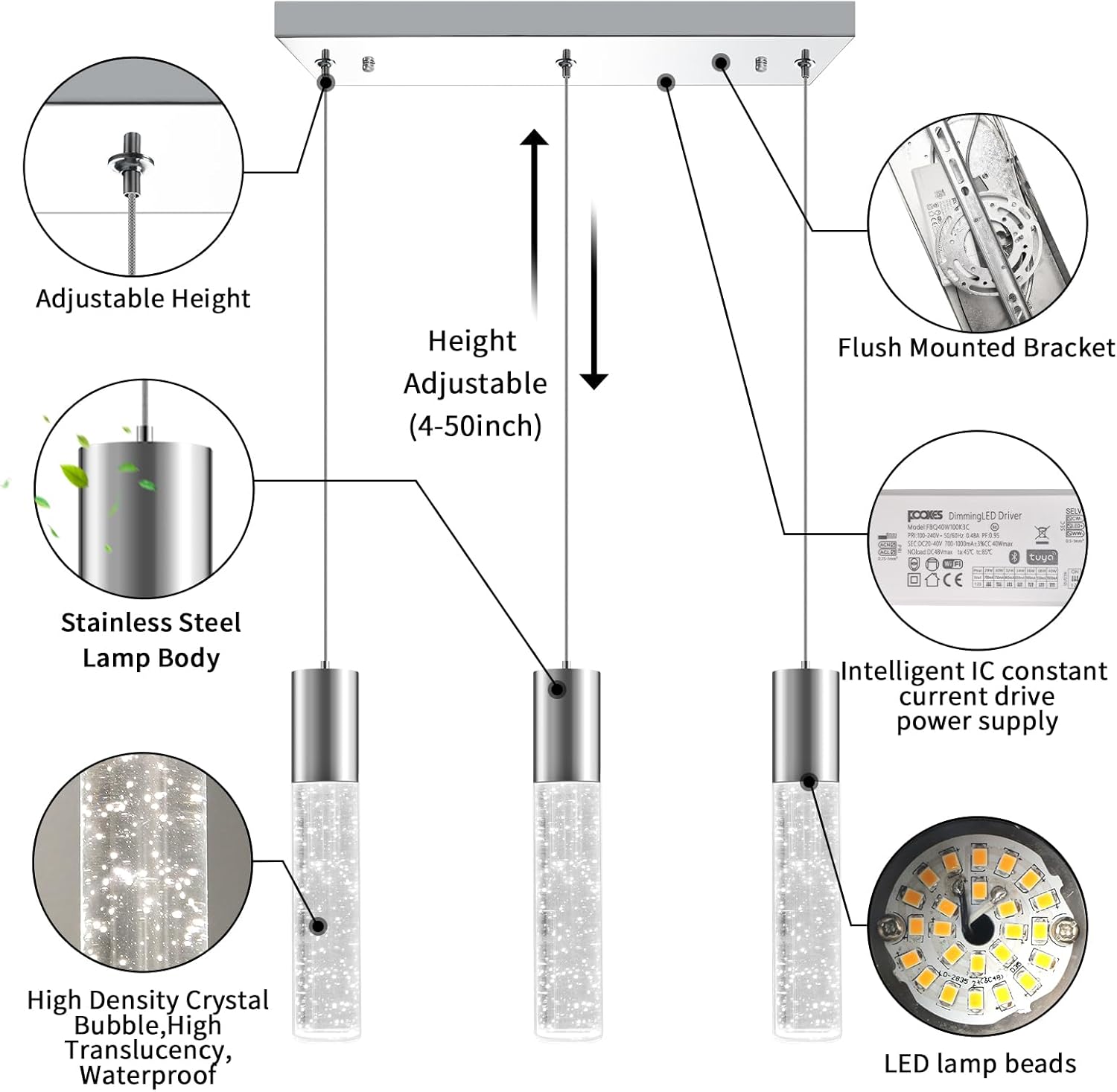 - 【Professional-Grade Comfortable Island Light】 The pendant light fixture uses an LED chip to emit a softer and more comfortable light, allowing you to completely relax and enjoy your food while dining.
