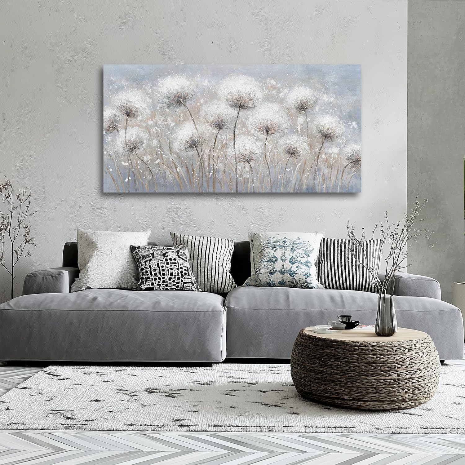 Belmrxne Floral Canvas Wall Art White Wall Decor Aesthetic Artwork Dandelion Canvas Painting for Living Room Bedroom Dining Room Office Home Decor 20x40 inch