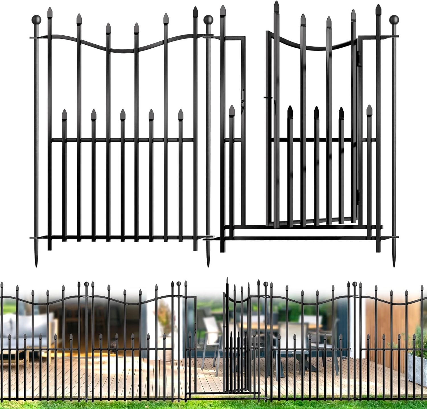 - 🛡️ Durable Coated Metal-Made from sturdy metal with a black protective coating, this decorative garden fencing is built to withstand outdoor weather. Offers both functionality and visual appeal for garden, patio, or backyard use.