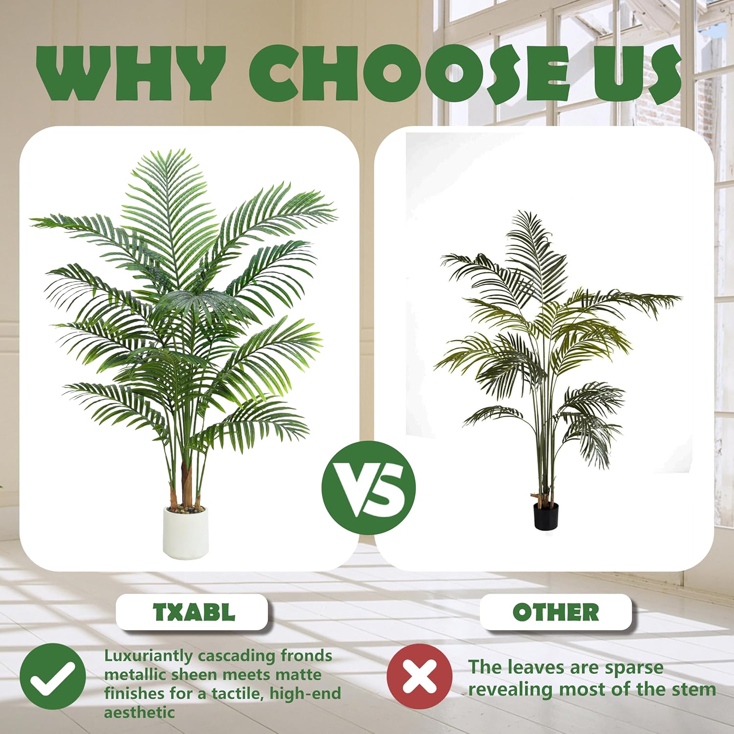- Safe & Durable Materials: This highly realistic faux palm tree indoor is made of durable and premium polyester material, real touch, waterproof, eco-friendly and harmless. It's easy To Clean, just use a duster. No special maintenance required. The tree decor leaves are thickened, more sturdy and durable. Carefully mimic the real texture of plants, under the light, it can better present the light and shadow effect of plants