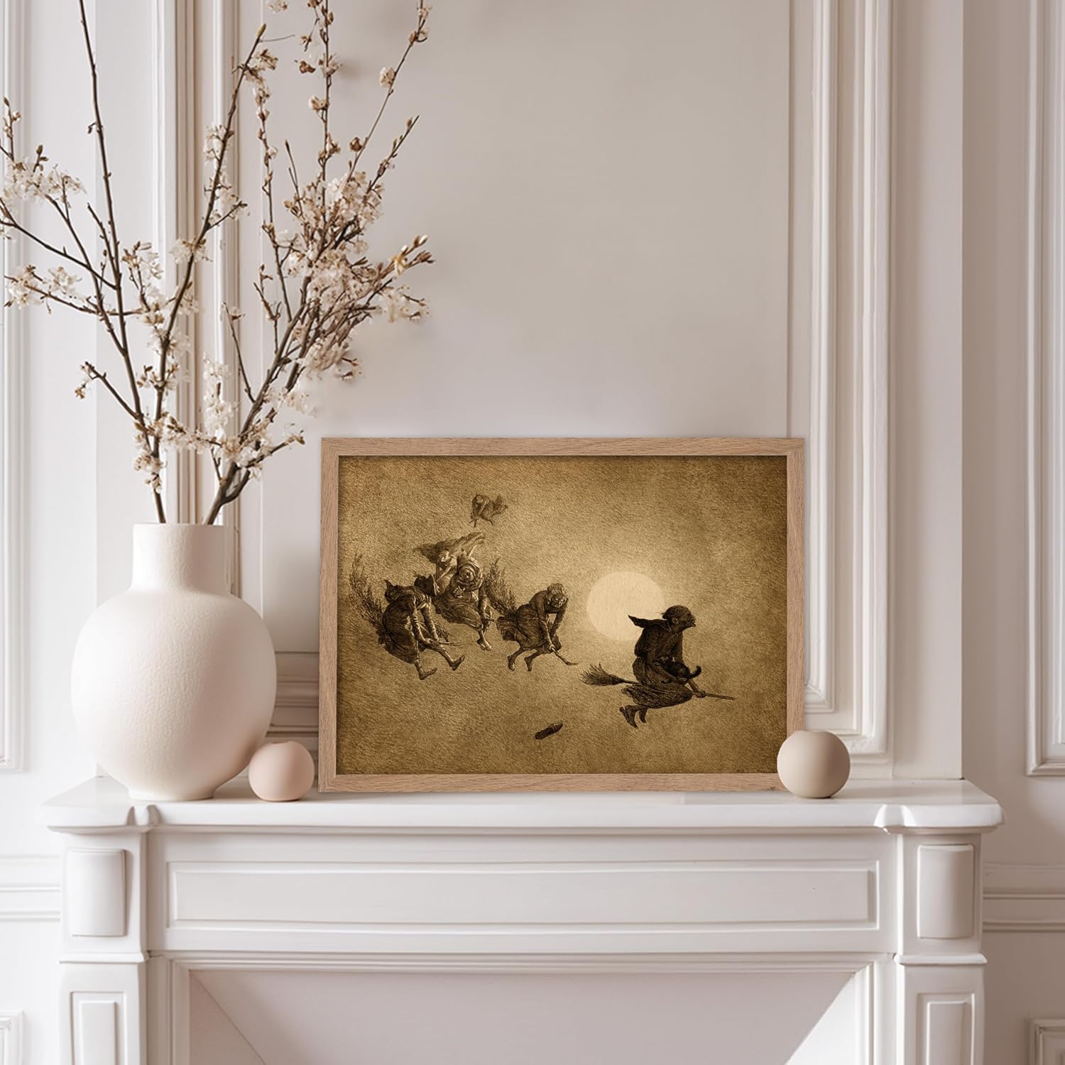 Poster Master Vintage William Holbrook Beard Poster - Retro Occult Print - Gift for Gothic, Horror Fan - The Witches Ride, Pagan, Goth, Magic - Wall Decor for Bedroom, Dorm, 11x14 Beige Framed