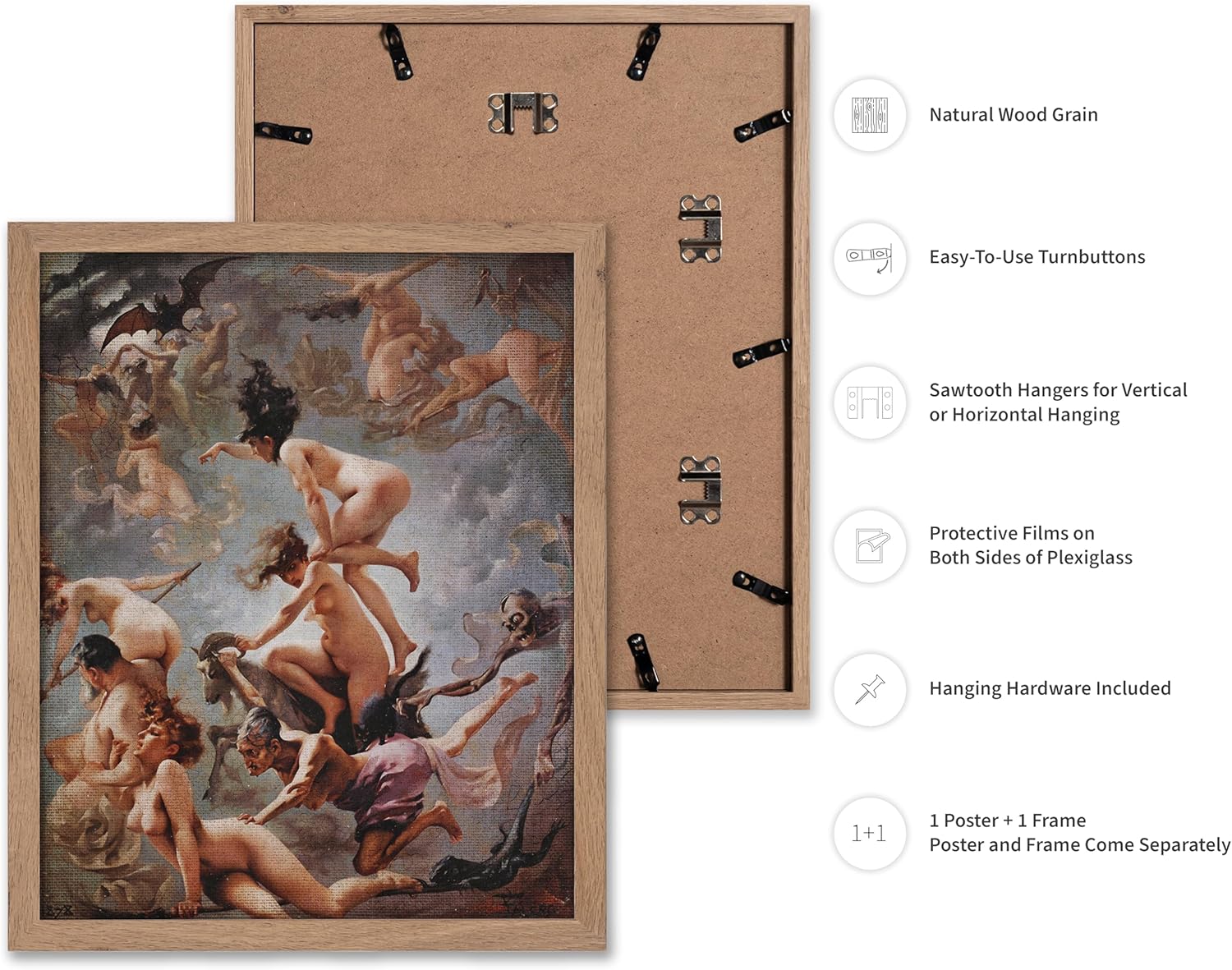 Poster Master Vintage Luis Ricardo Falero Poster - Retro Occult Print - Gift for Gothic, Horror Fan - Witches Going to their Sabbath, Pagan - Wall Decor for Bedroom, Dorm, 8x10 Beige Framed