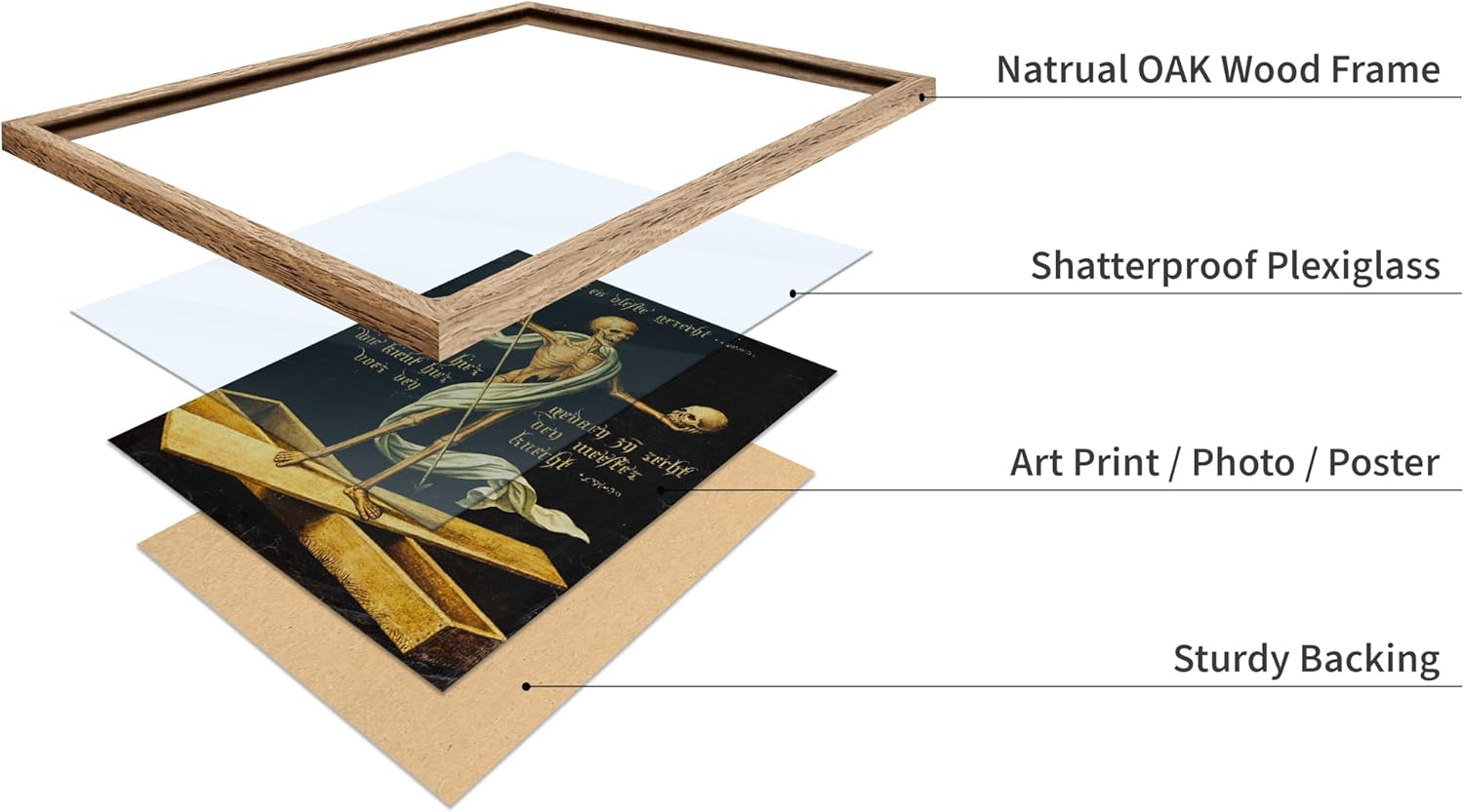 Poster Master Vintage Medieval Poster - Retro Gothic Print - Gift for Artist, Friend - Allegory of Life and Death, Skeleton, Dark, Skull - Wall Decor for Home, Living Room, 16x20 Beige Framed