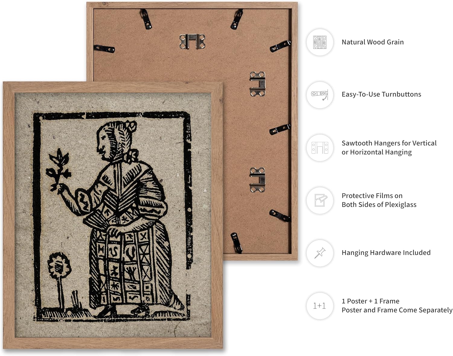 Poster Master Vintage Woodcut Poster - Retro Medieval Print - Gift for Gothic, Horror Fan - Witch Holding a Plant, Magic, Spell, Herbalist - Wall Decor for Bedroom, Dorm, 16x20 Beige Framed