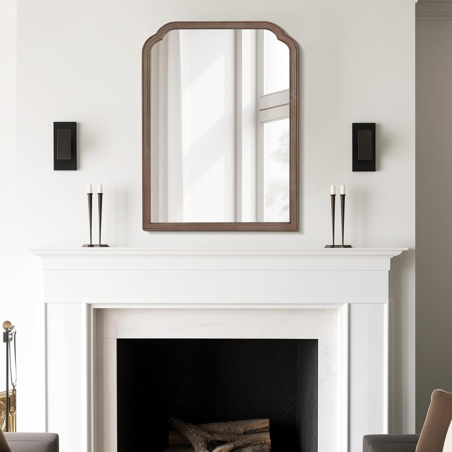 WallBeyond 30" x 40" Wood Bathroom Mirror for Wall Mounted, Rustic Rounded Corner Vanity Mirror for Entryway, Living Room or Bedroom Home Decorative [30" x 40" Walnut]