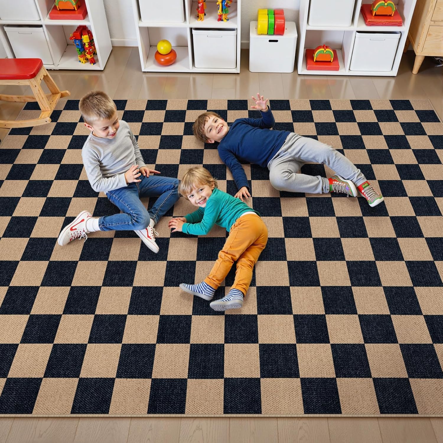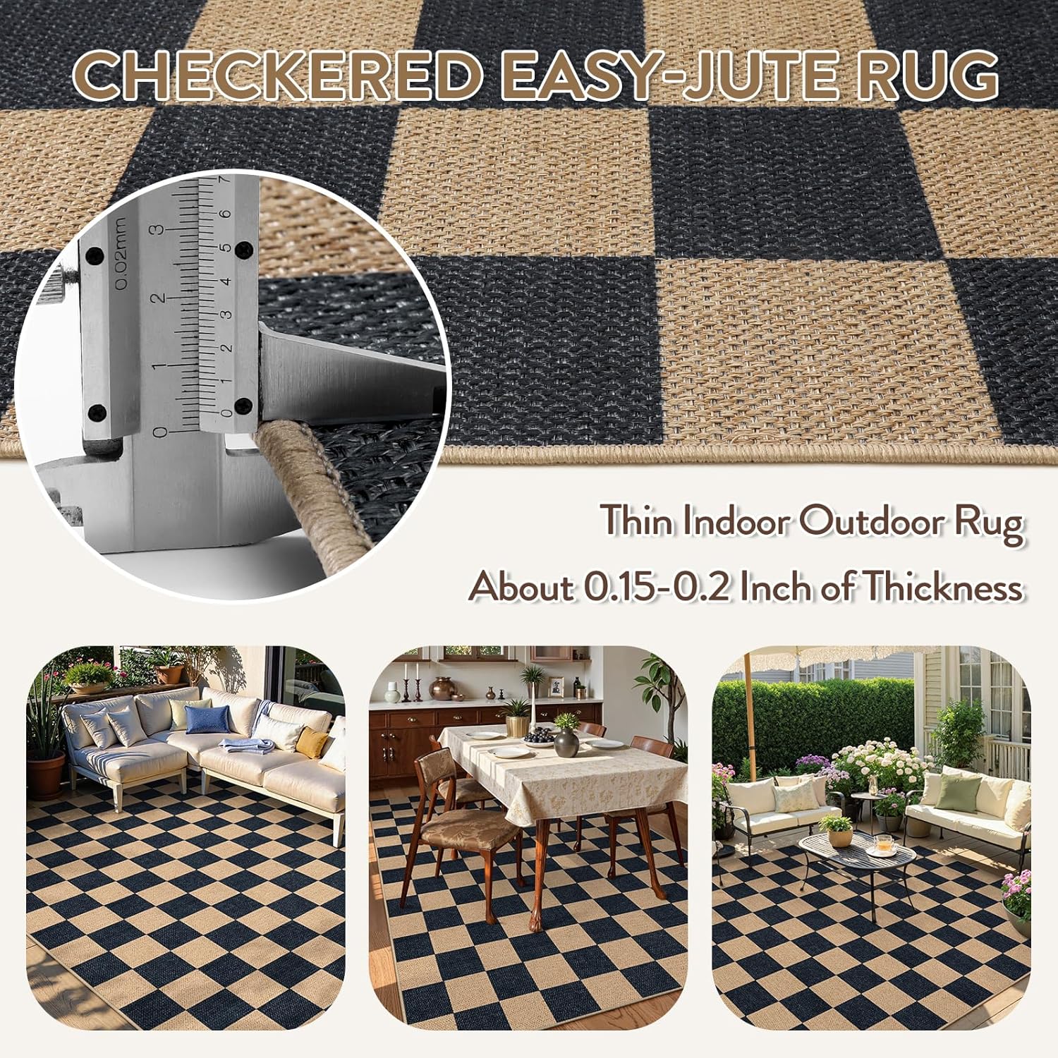 Lahome Checkered Easy Jute Carpet, Washable Area Rug 6x9 Neutral Outdoor Patio Rug, Farmhouse Checkerboard Non Slip Non Shedding Floor Carpet for Dining Living Room Deck Sunroom