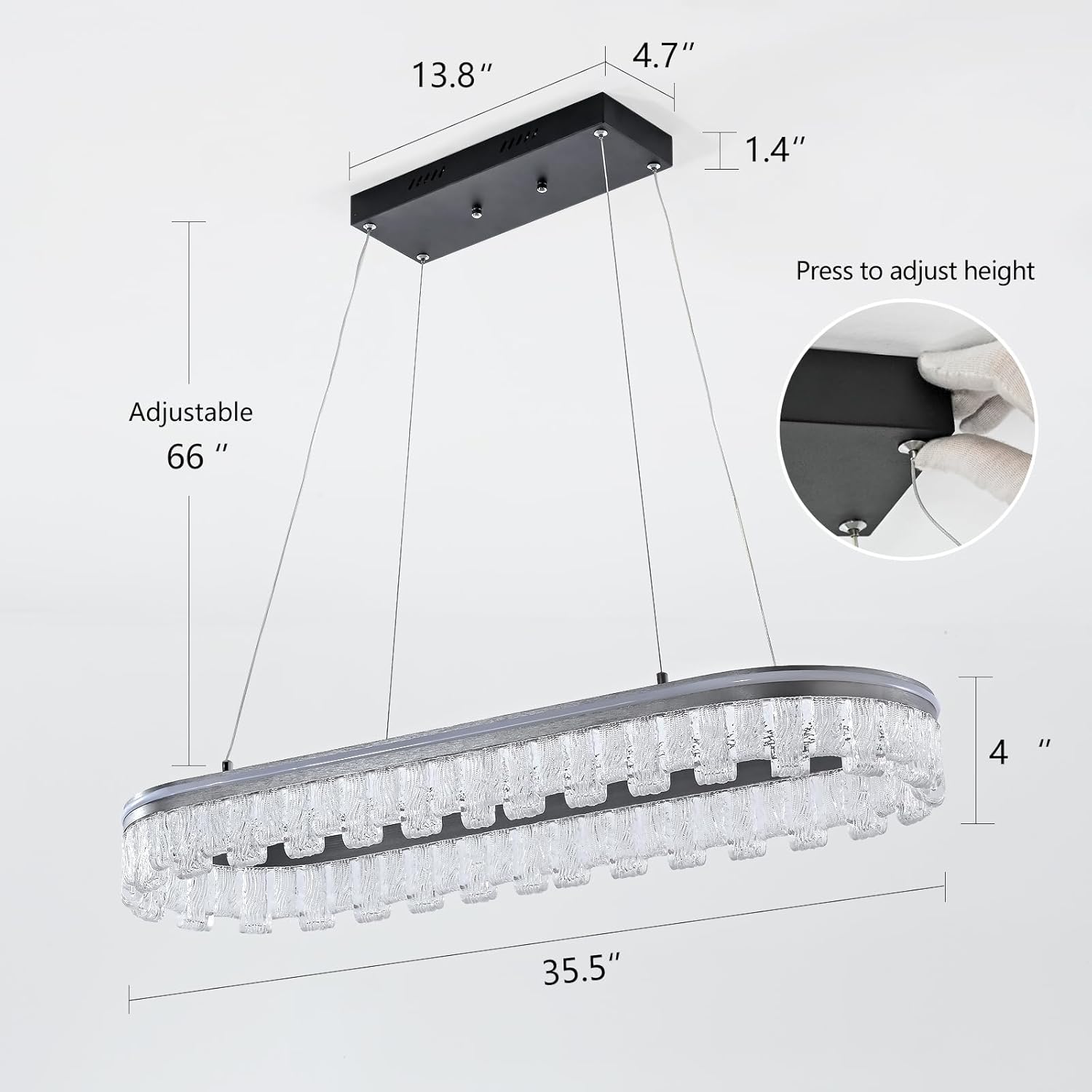 - Modern Design Kitchen Island: Elegant elliptical runway-style modern pendant light kitchen island with crystal-clear hanging elements and sleek silvery gray aluminum frame, perfect for contemporary spaces