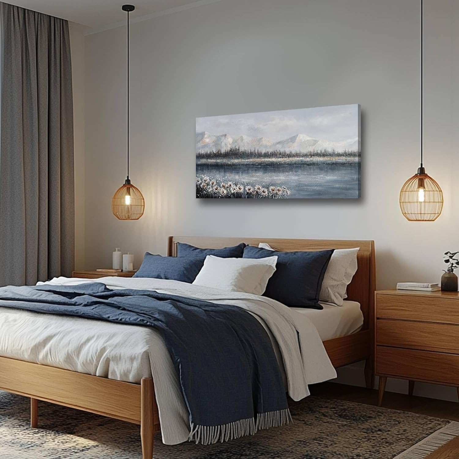- Easy to hang: High quality canvas is stretched and fixed on the wood frame to make it more textured. High quality canvas and high quality wood frame extend the life of the painting. Hooks are reserved behind the wood frame for easy hanging.