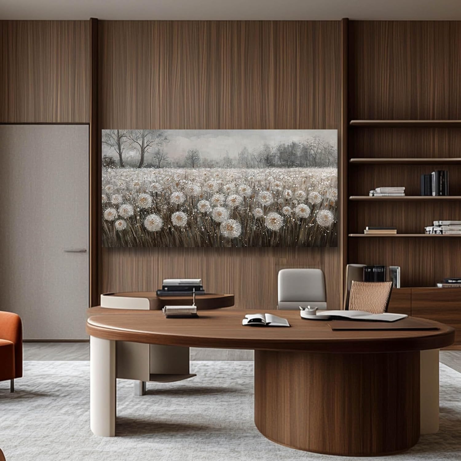 White Flowers Wall Art for Living Room Framed Wall Decor Dandelion Wall Art Artwork Canvas Paintings for Home Office 29"x58”