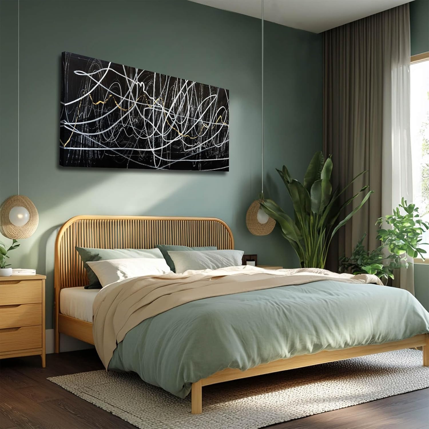 - Easy to hang: High quality canvas is stretched and fixed on the wood frame to make it more textured. High quality canvas and high quality wood frame extend the life of the painting. Hooks are reserved behind the wood frame for easy hanging.
