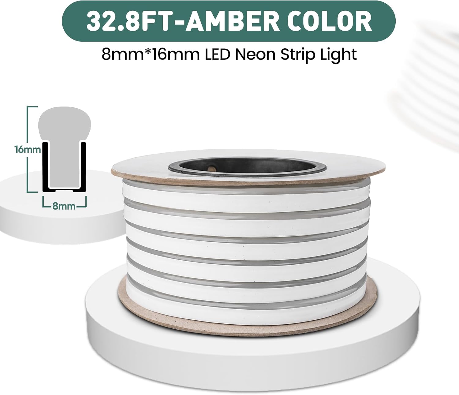 GZBtech Flexible LED Neon Rope Lights 33FT,AC 110-120V Waterproof Strip Light, 120 LEDs/M Cuttable Connectable Neon Lighting for Indoor Outdoor Home Decor/Commercial Building Use-Amber 10M