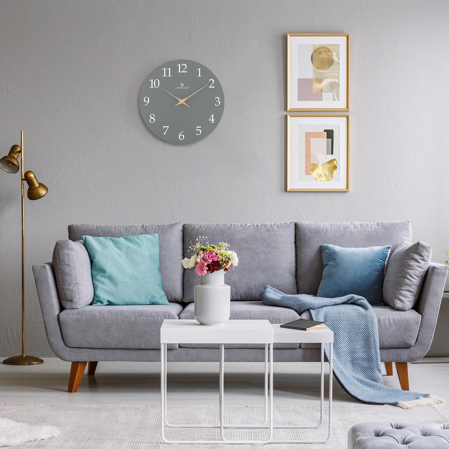 Lafocuse 12 Inch Silent Grey Wall Clock Battery Operated for Living Room Decor, Simple Minimalist Wooden Wall Clock for Kitchen Bedroom Office