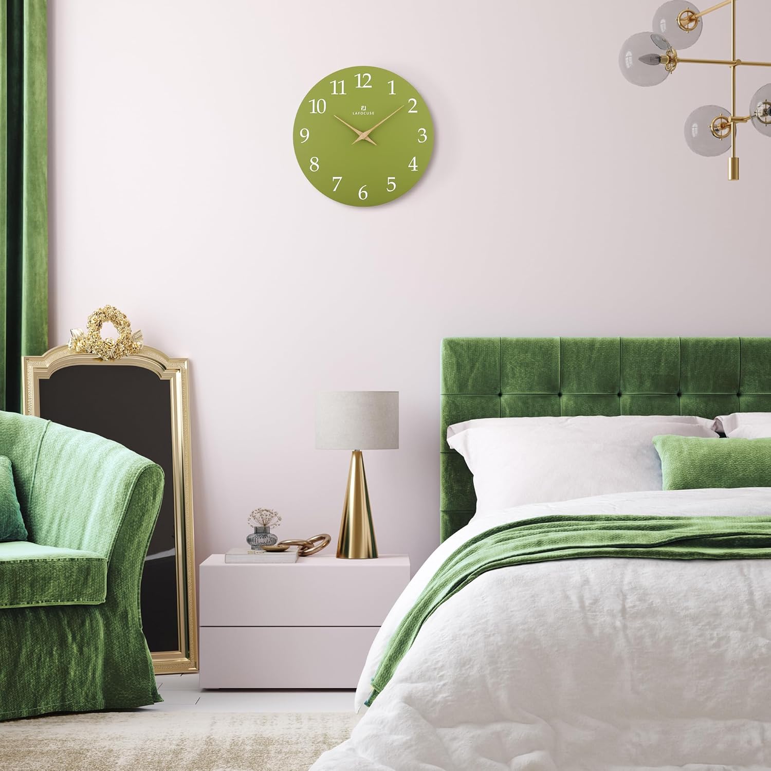 Lafocuse 12 Inch Silent Olive Green Wall Clock Battery Operated for Living Room Decor, Simple Minimalist Wooden Wall Clock for Kitchen Bedroom Office