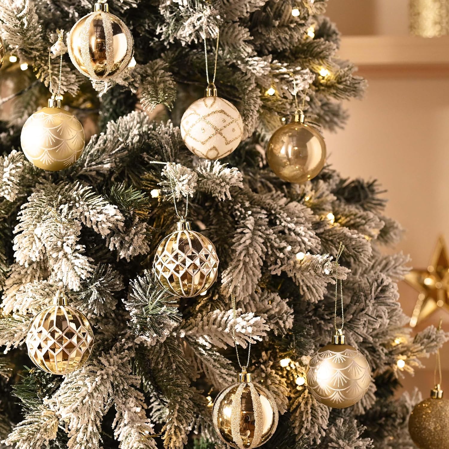 - 【Original Design】Valery Madelyn is a retail brand adhering to original seasonal decorations. This set of Christmas balls applies white and gold colors to create a elegant atmosphere