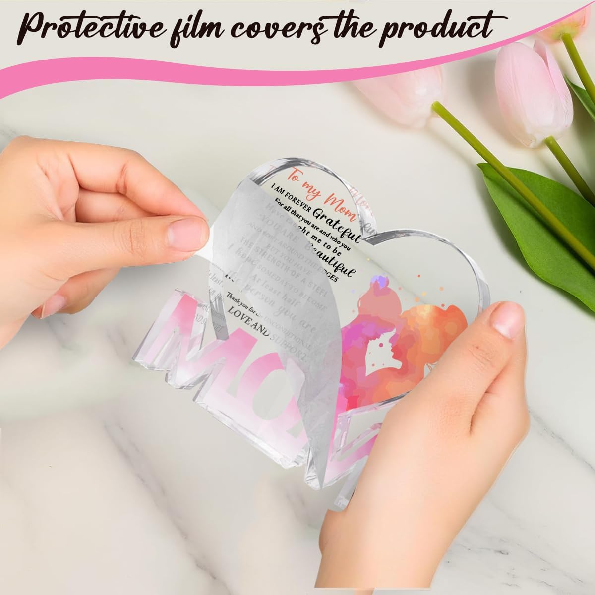 Mothers Day Gifts Best Mom Gifts -Gifts for Mom from Daughter Son - Best Mom Ever Gifts Unique Mother Birthday Acrylic Heart-Shaped Plaque Desk Decorations Present for Mom Christmas Anniversary