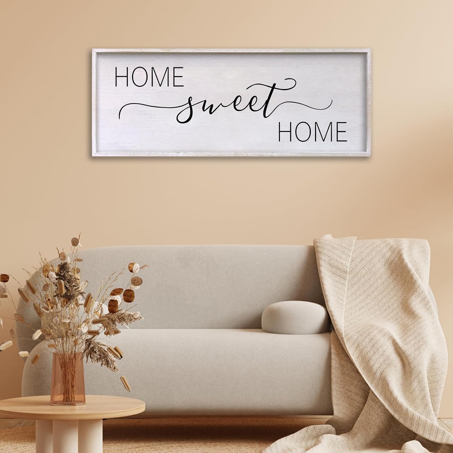 Home Sweet Home Sign Wall Decor 40"x15" Above Bed Living Room Large Wooden Framed Family Plaques Art (White)