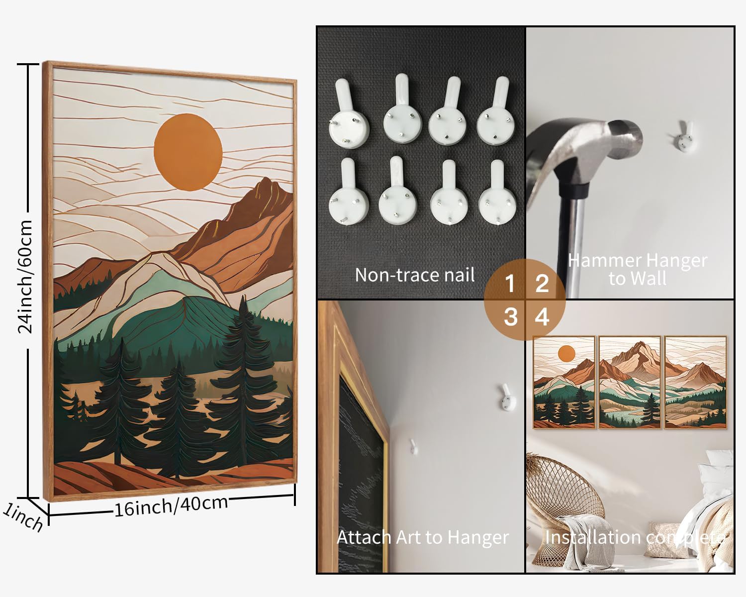- Boho Inspired Decor: With its charming bohemian style and picturesque pine wilderness scenes, this artwork complements a variety of decor themes, from modern to rustic, adding a touch of warmth and character to your home or workspace.