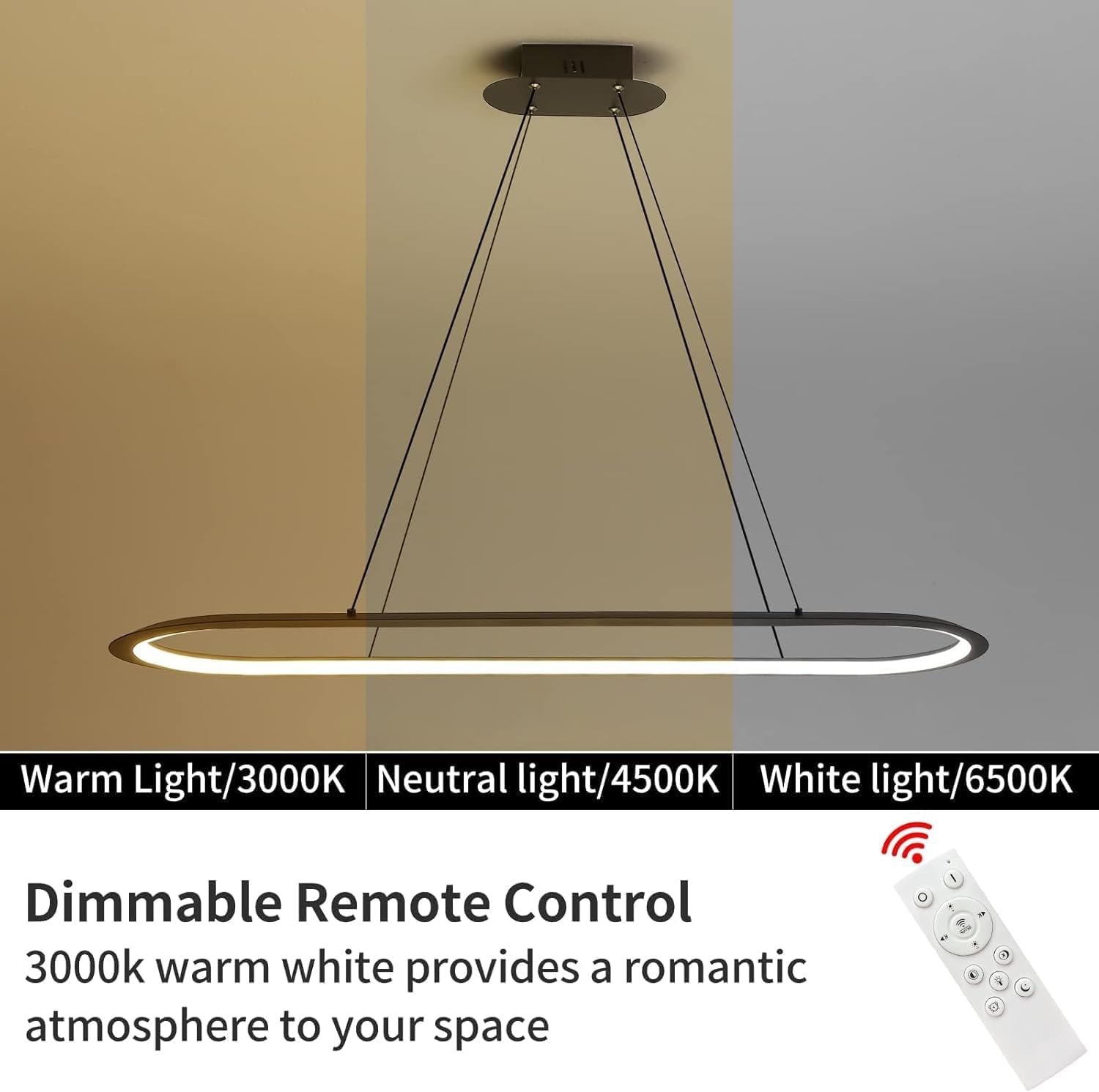Island Lights, Linear Pendant Light LED Dimmable Hanging Light Fixture, 3000K-6500K with Remote Control,Chandeliers for Dining Room(Black,39.3IN)